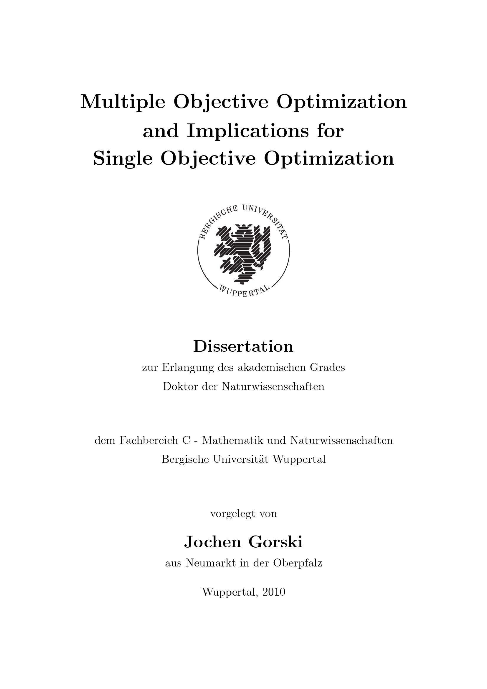 Multiple objective optimization and implications for single objective optimization / vorgelegt von Jochen Gorski