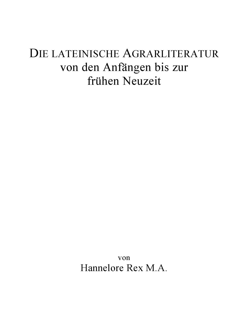 Die lateinische Agrarliteratur von den Anfängen bis zur frühen Neuzeit / von Hannelore Rex