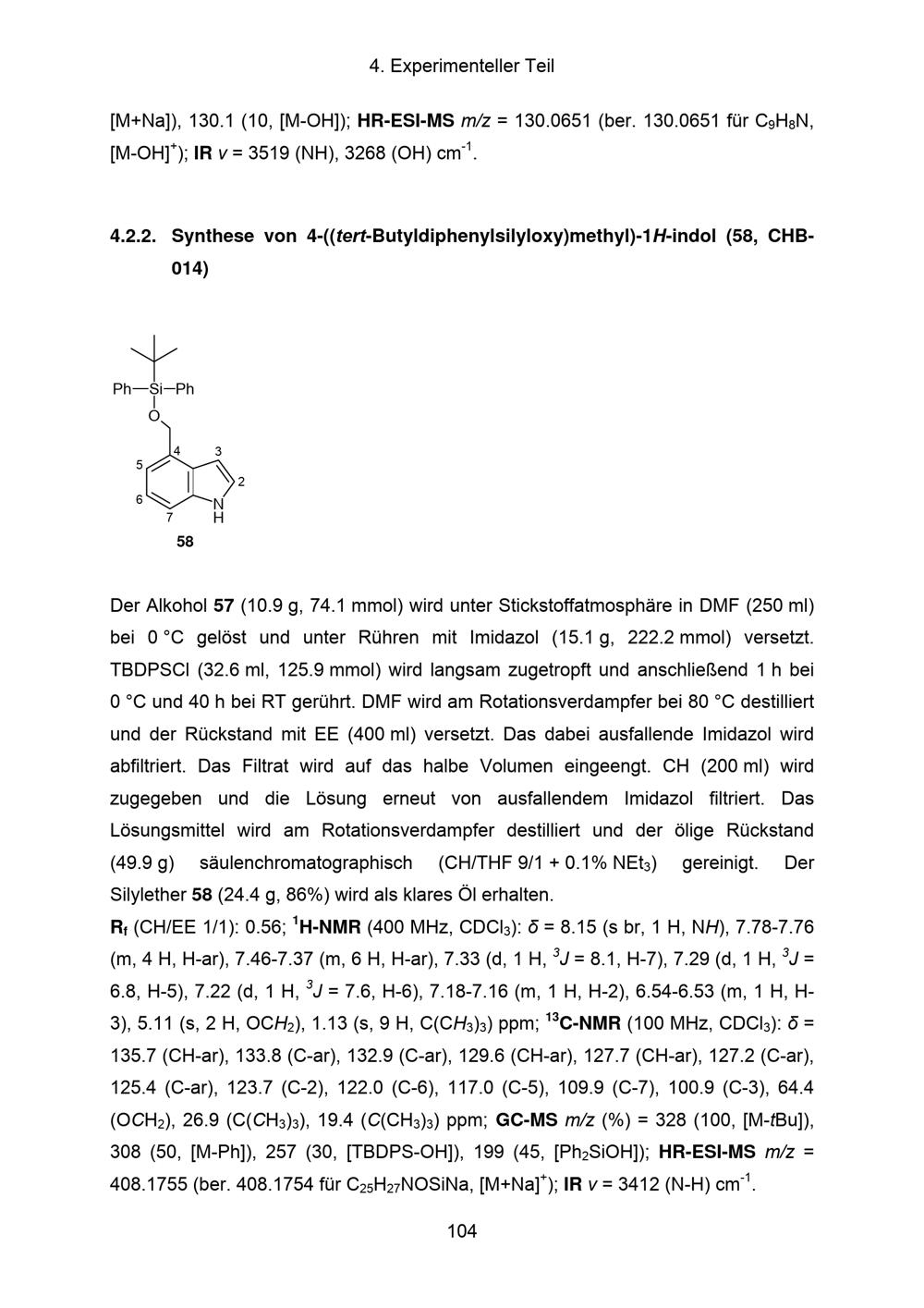 4.2.2. Synthese von 4-((tert-Butyldiphenylsilyloxy)methyl)-1H-indol (58, CHB-014[...]
