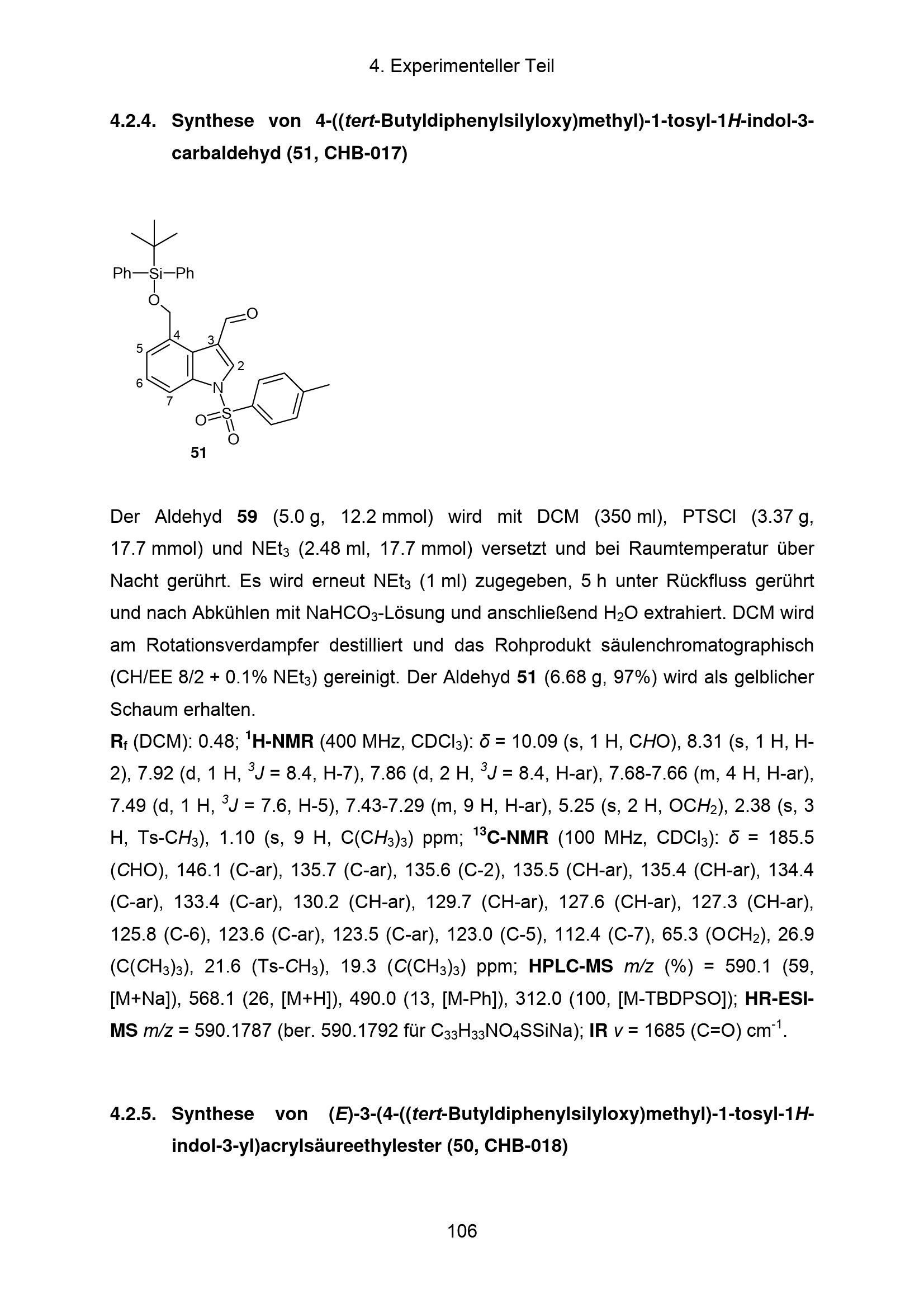 4.2.4. Synthese von 4-((tert-Butyldiphenylsilyloxy)methyl)-1-tosyl-1H-indol-3-carbaldehyd[...]
