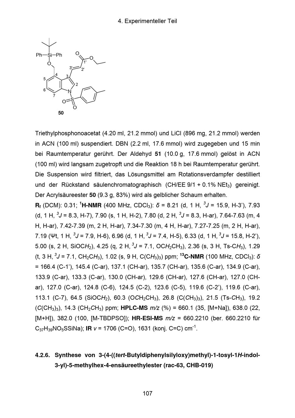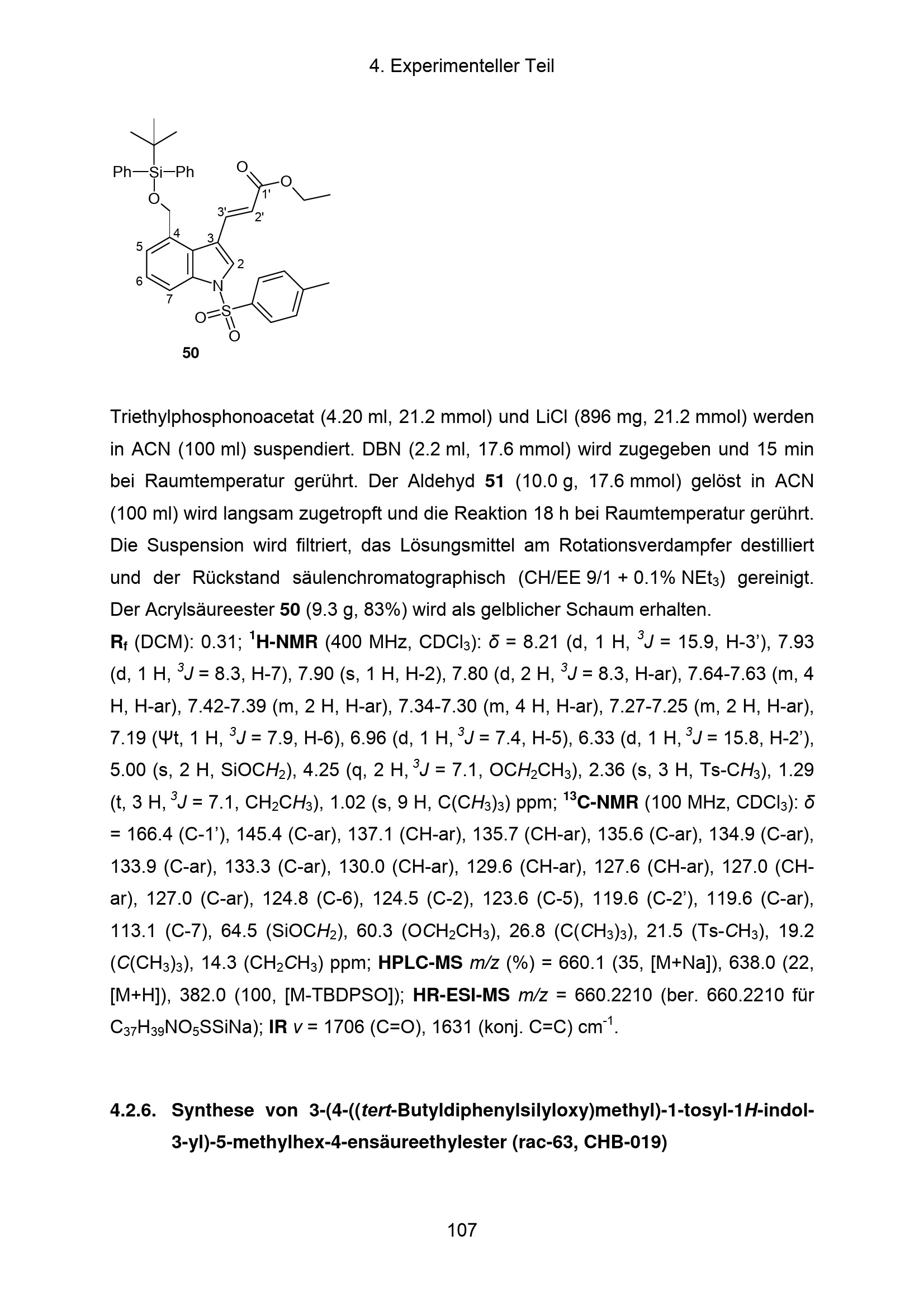 4.2.6. Synthese von 3-(4-((tert-Butyldiphenylsilyloxy)methyl)-1-tosyl-1H-indol-3-yl)-5-methylhex-4-ensäureethylester[...]