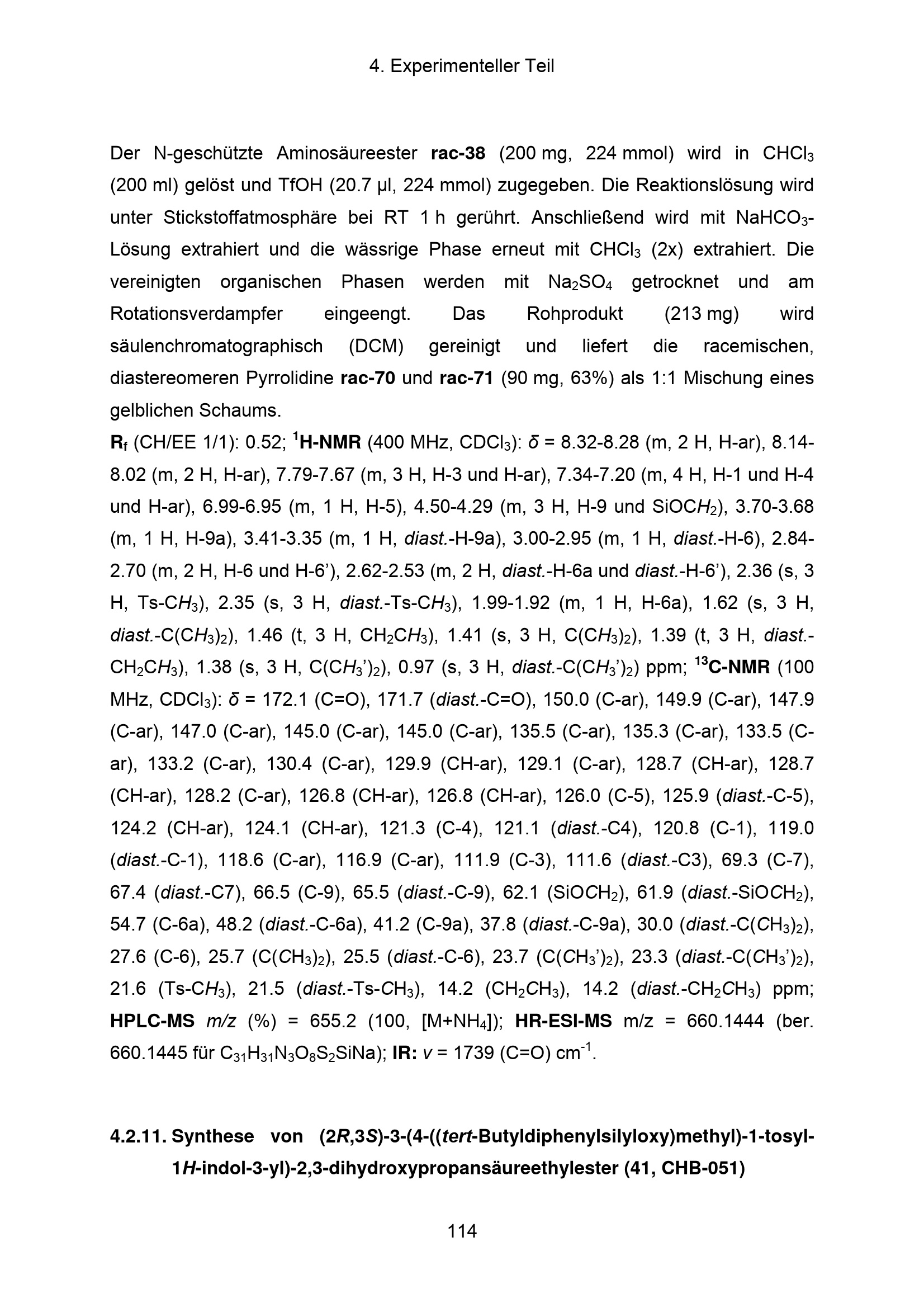 4.2.11. Synthese von (2R,3S)-3-(4-((tert-Butyldiphenylsilyloxy)methyl)-1-tosyl-1H-indol-3-yl)-2,3-dihydroxypropansäureethylester[...]