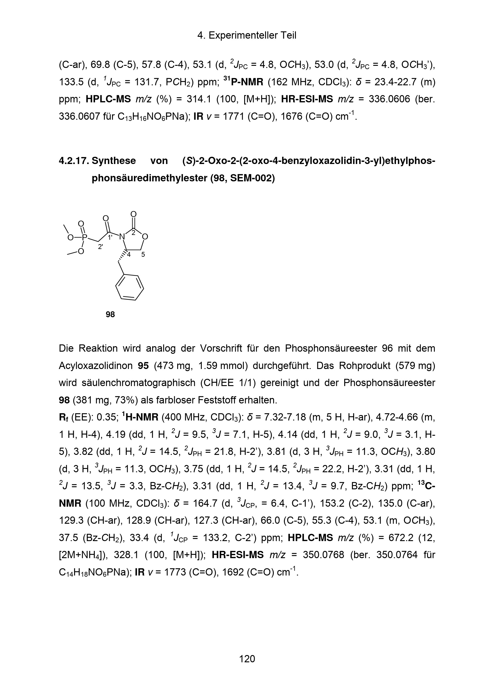 4.2.17. Synthese von (S)-2-Oxo-2-(2-oxo-4-benzyloxazolidin-3-yl)ethylphos-phonsäuredimethylester[...]
