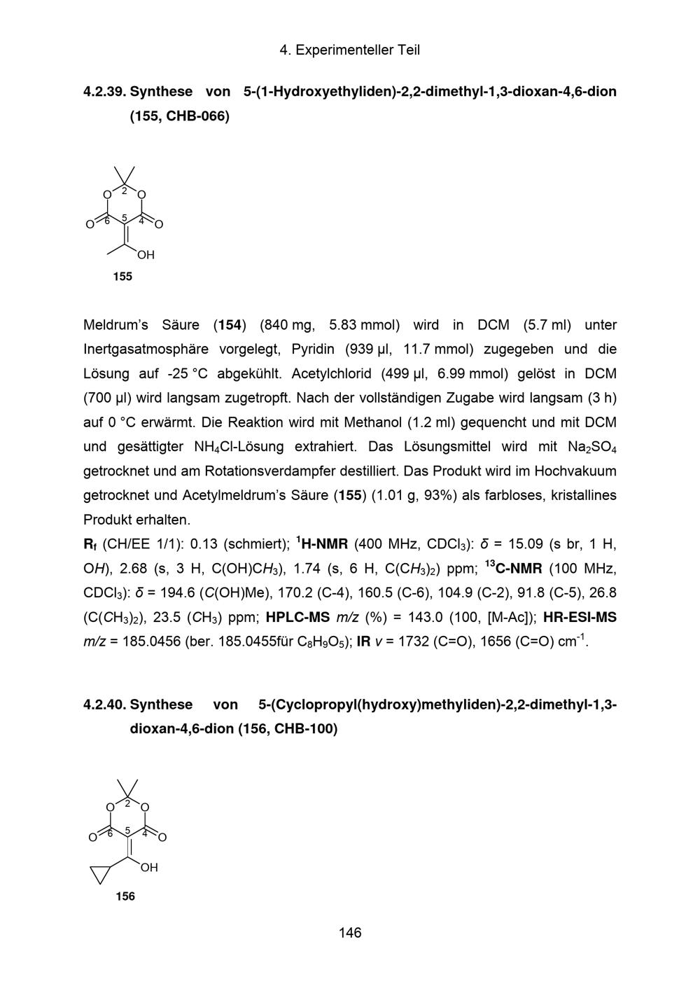 4.2.39. Synthese von 5-(1-Hydroxyethyliden)-2,2-dimethyl-1,3-dioxan-4,6-dion (155,[...]