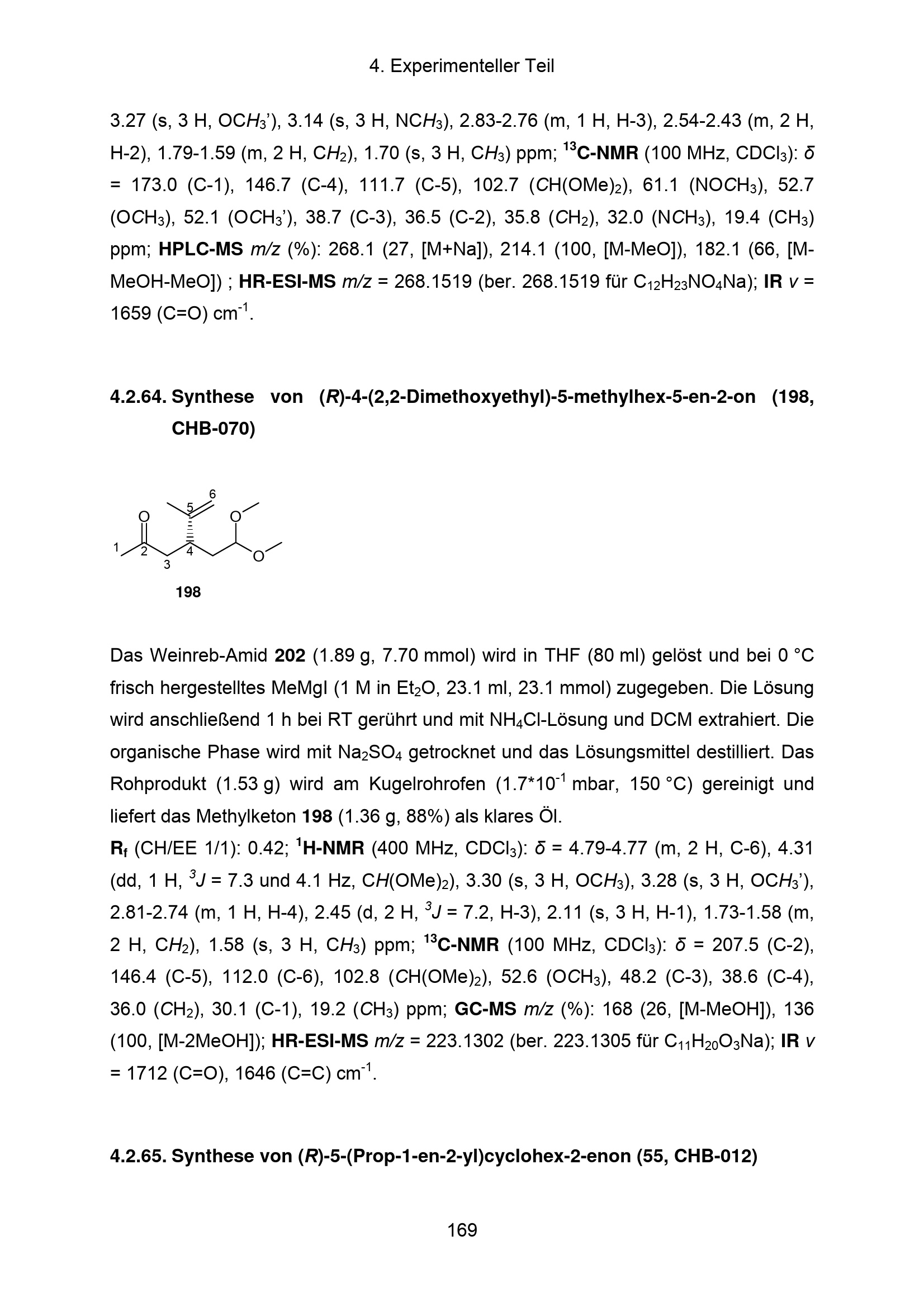 4.2.64. Synthese von (R)-4-(2,2-Dimethoxyethyl)-5-methylhex-5-en-2-on (198, CHB0[...]