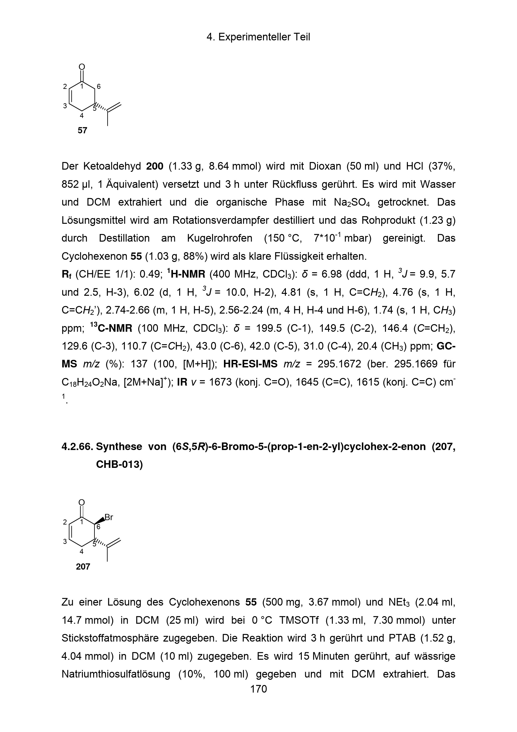 4.2.66. Synthese von (6S,5R)-6-Bromo-5-(prop-1-en-2-yl)cyclohex-2-enon (207, CHB[...]