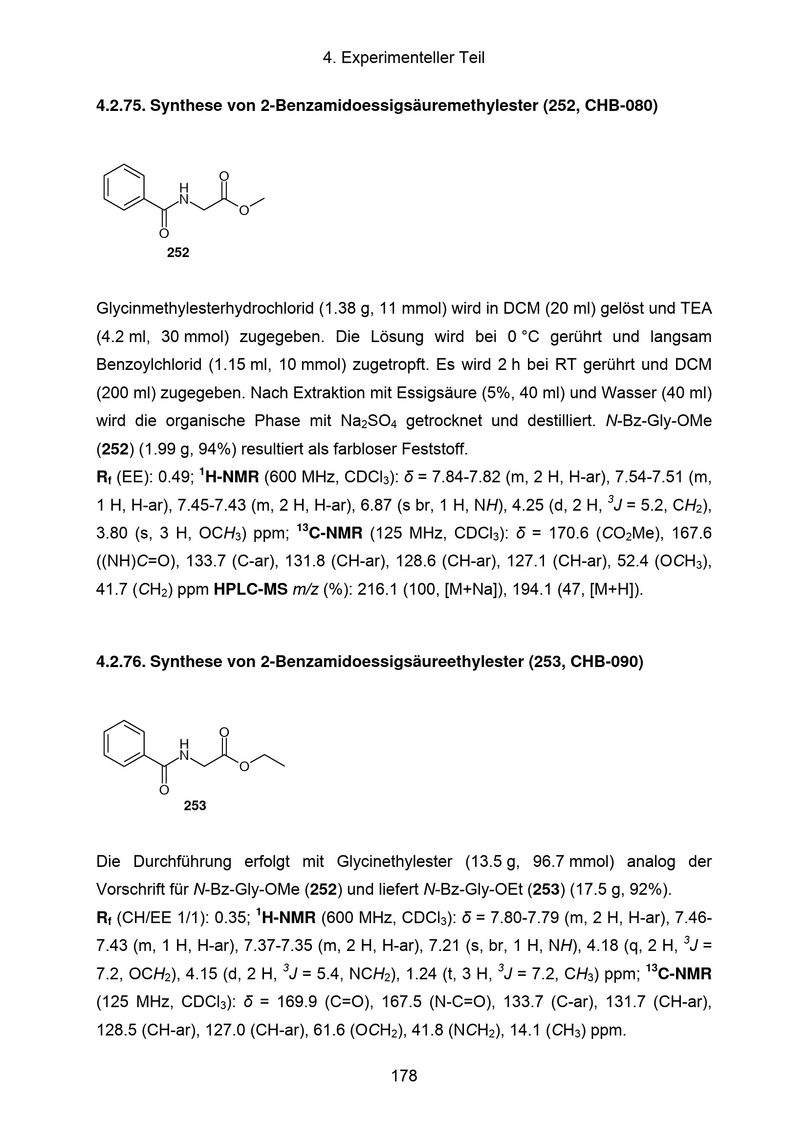 4.2.75. Synthese von 2Benzamidoessigsäuremethylester (252, CHB080)