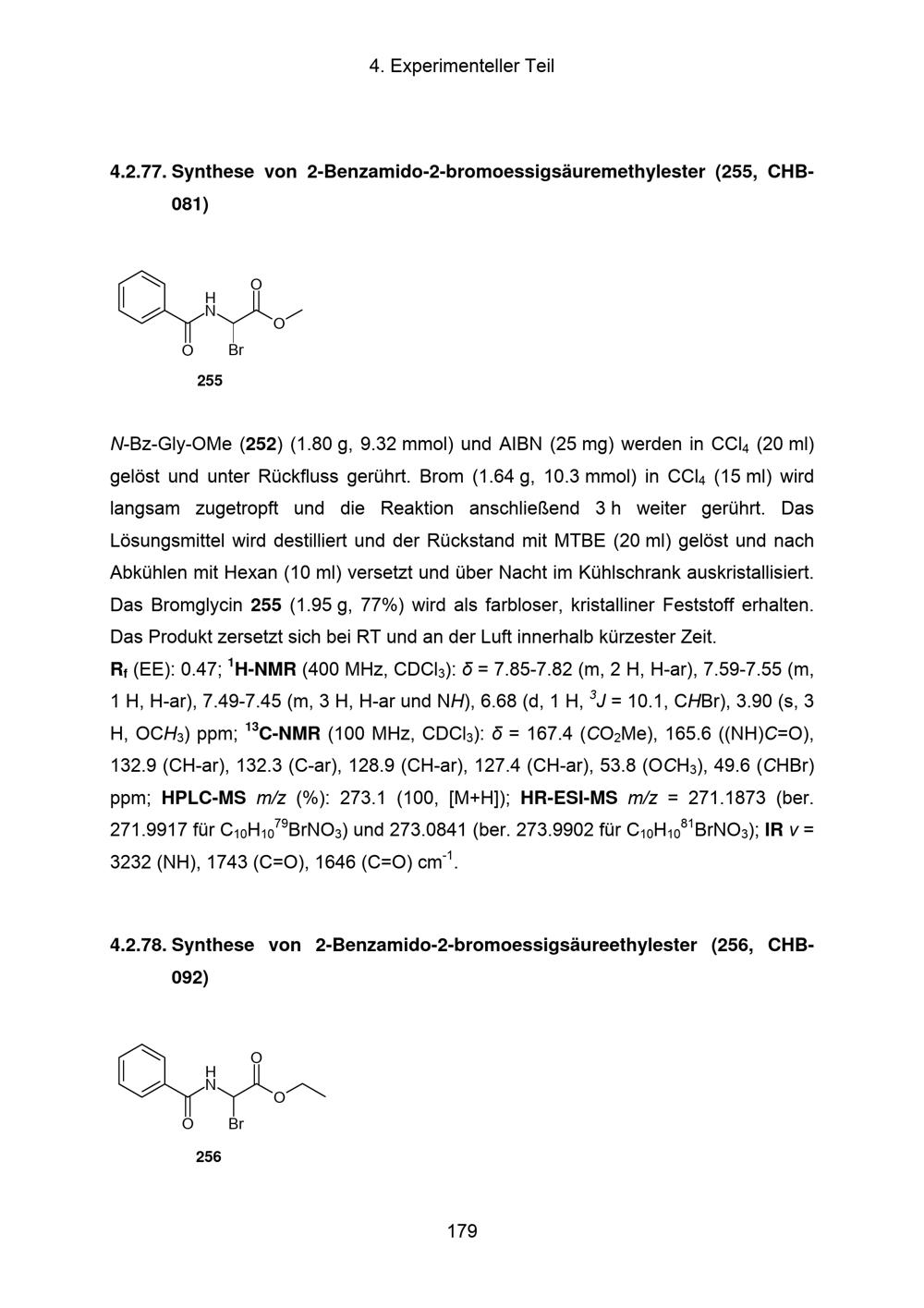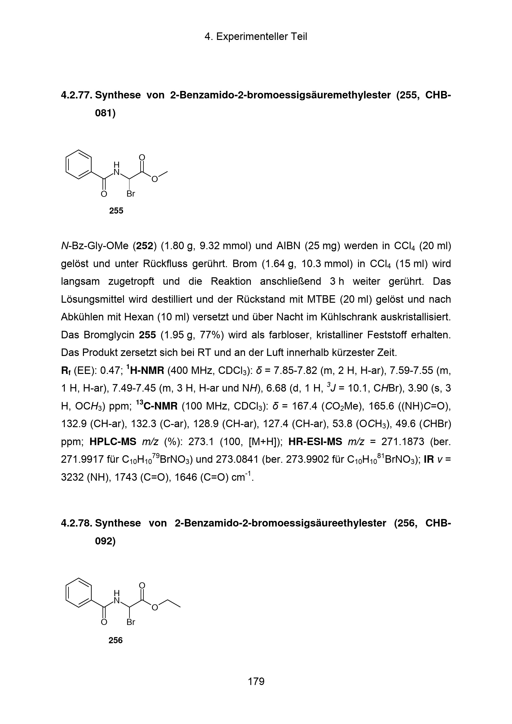 4.2.77. Synthese von 2-Benzamido-2-bromoessigsäuremethylester (255, CHB-081)