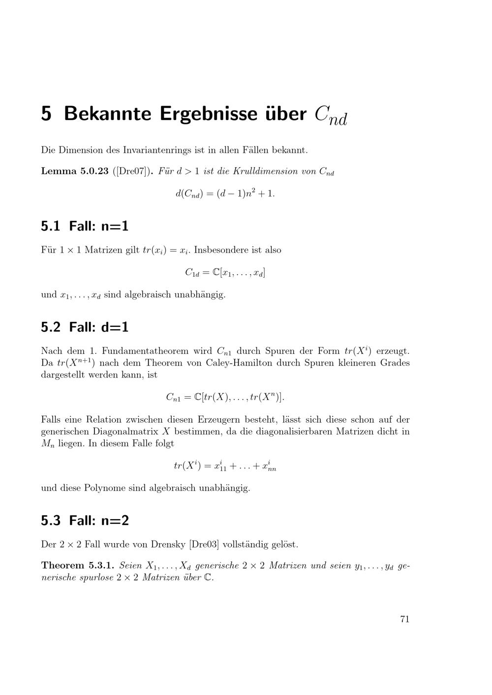 Bekannte Ergebnisse über Cnd