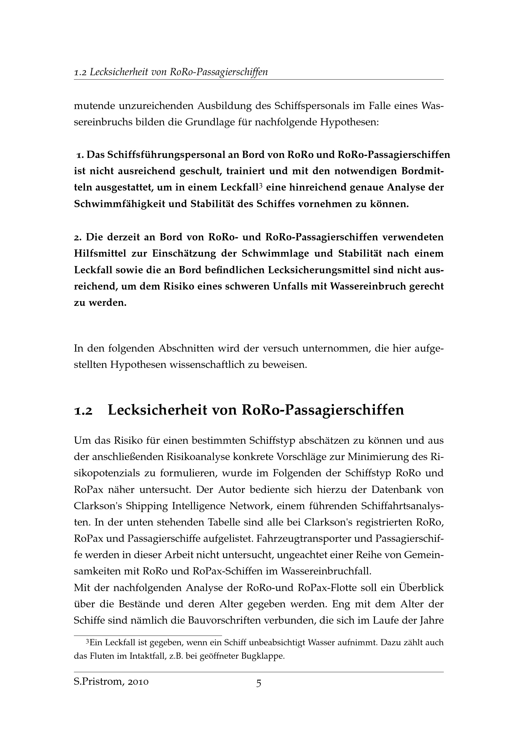 Untersuchung zur Einschätzung von Schwimmlage und Stabilität an Bord von RoRo und RoRo-Passagierschiffen im Wassereinbruchfall / von Sascha Pristrom