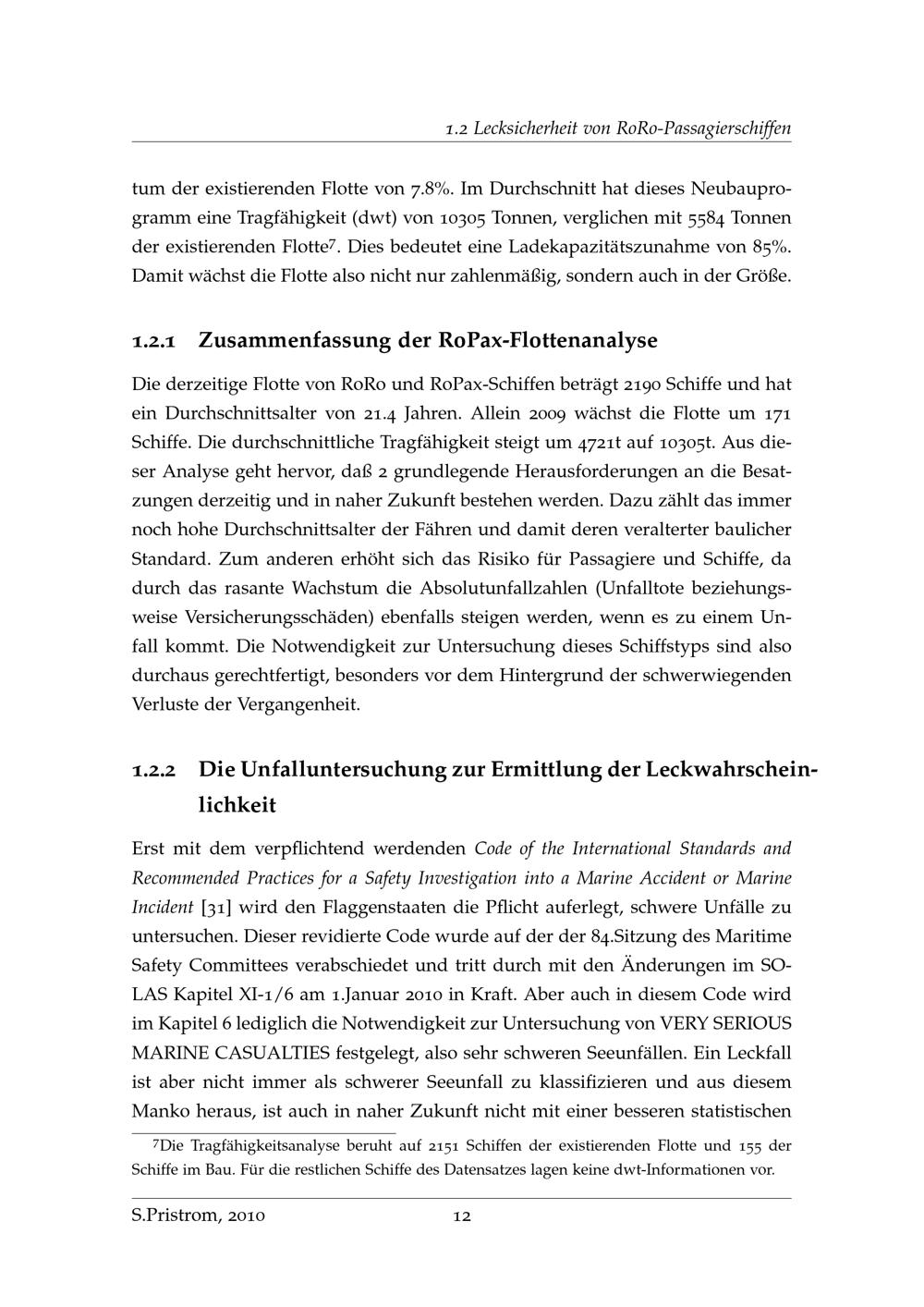 Untersuchung zur Einschätzung von Schwimmlage und Stabilität an Bord von RoRo und RoRo-Passagierschiffen im Wassereinbruchfall / von Sascha Pristrom