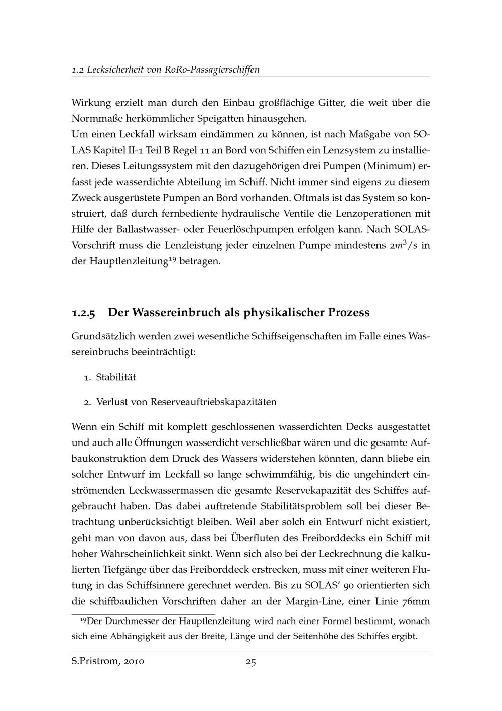 Untersuchung zur Einschätzung von Schwimmlage und Stabilität an Bord von RoRo und RoRo-Passagierschiffen im Wassereinbruchfall / von Sascha Pristrom
