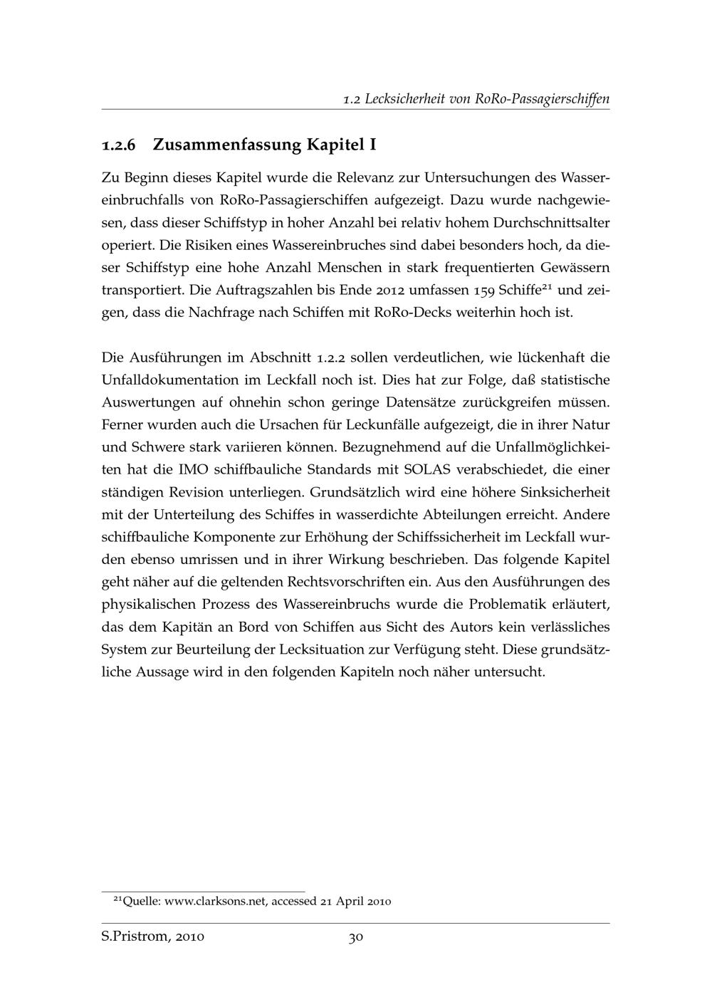 Untersuchung zur Einschätzung von Schwimmlage und Stabilität an Bord von RoRo und RoRo-Passagierschiffen im Wassereinbruchfall / von Sascha Pristrom