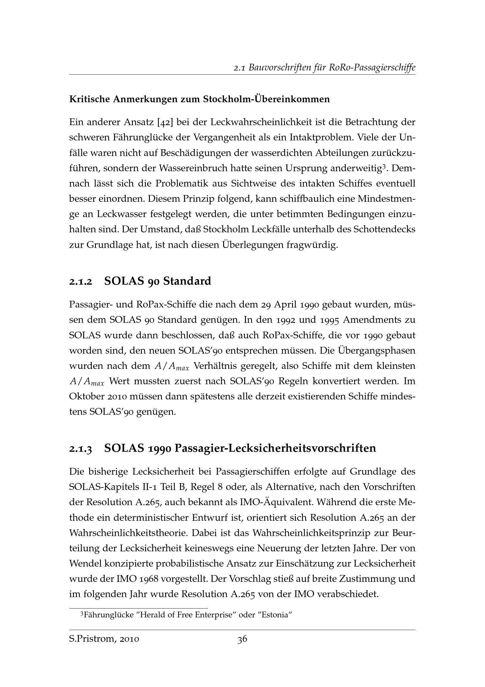 Untersuchung zur Einschätzung von Schwimmlage und Stabilität an Bord von RoRo und RoRo-Passagierschiffen im Wassereinbruchfall / von Sascha Pristrom
