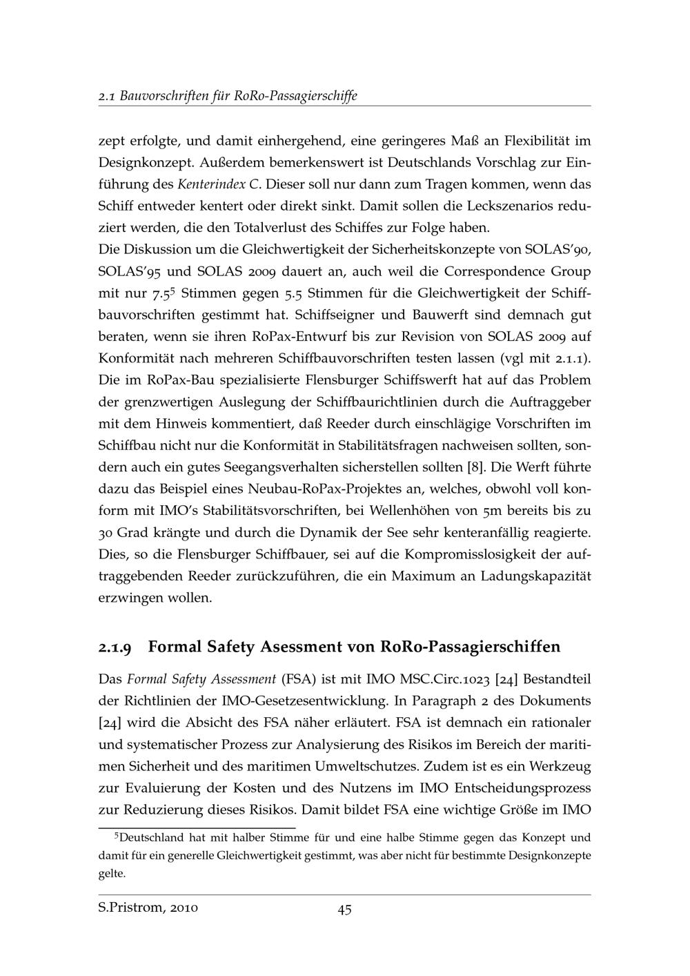 Untersuchung zur Einschätzung von Schwimmlage und Stabilität an Bord von RoRo und RoRo-Passagierschiffen im Wassereinbruchfall / von Sascha Pristrom