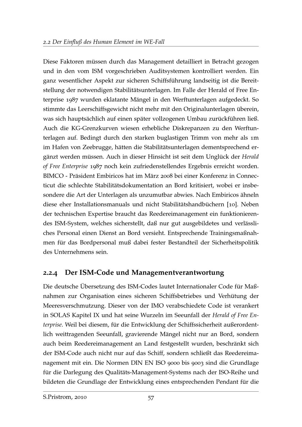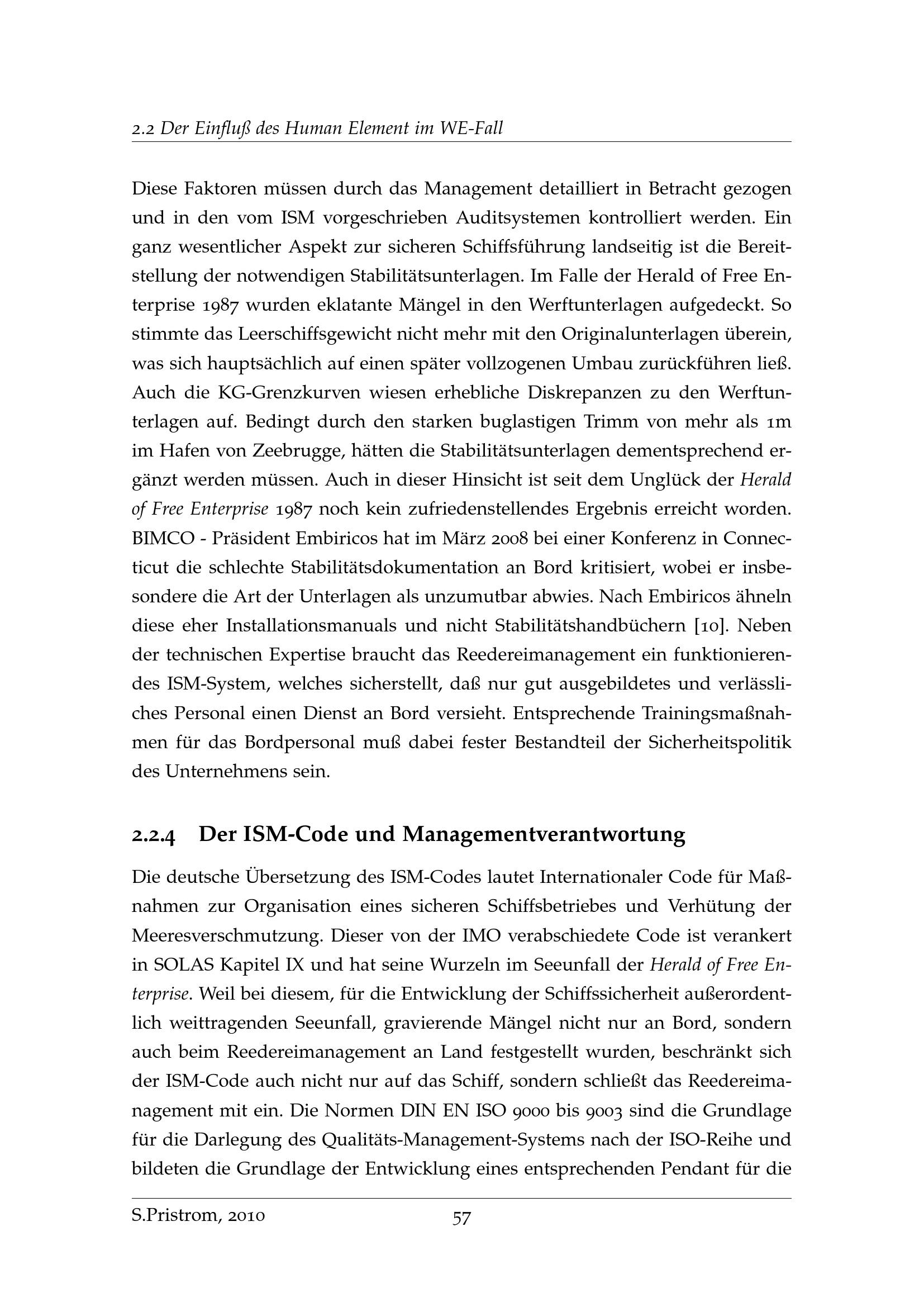 Untersuchung zur Einschätzung von Schwimmlage und Stabilität an Bord von RoRo und RoRo-Passagierschiffen im Wassereinbruchfall / von Sascha Pristrom