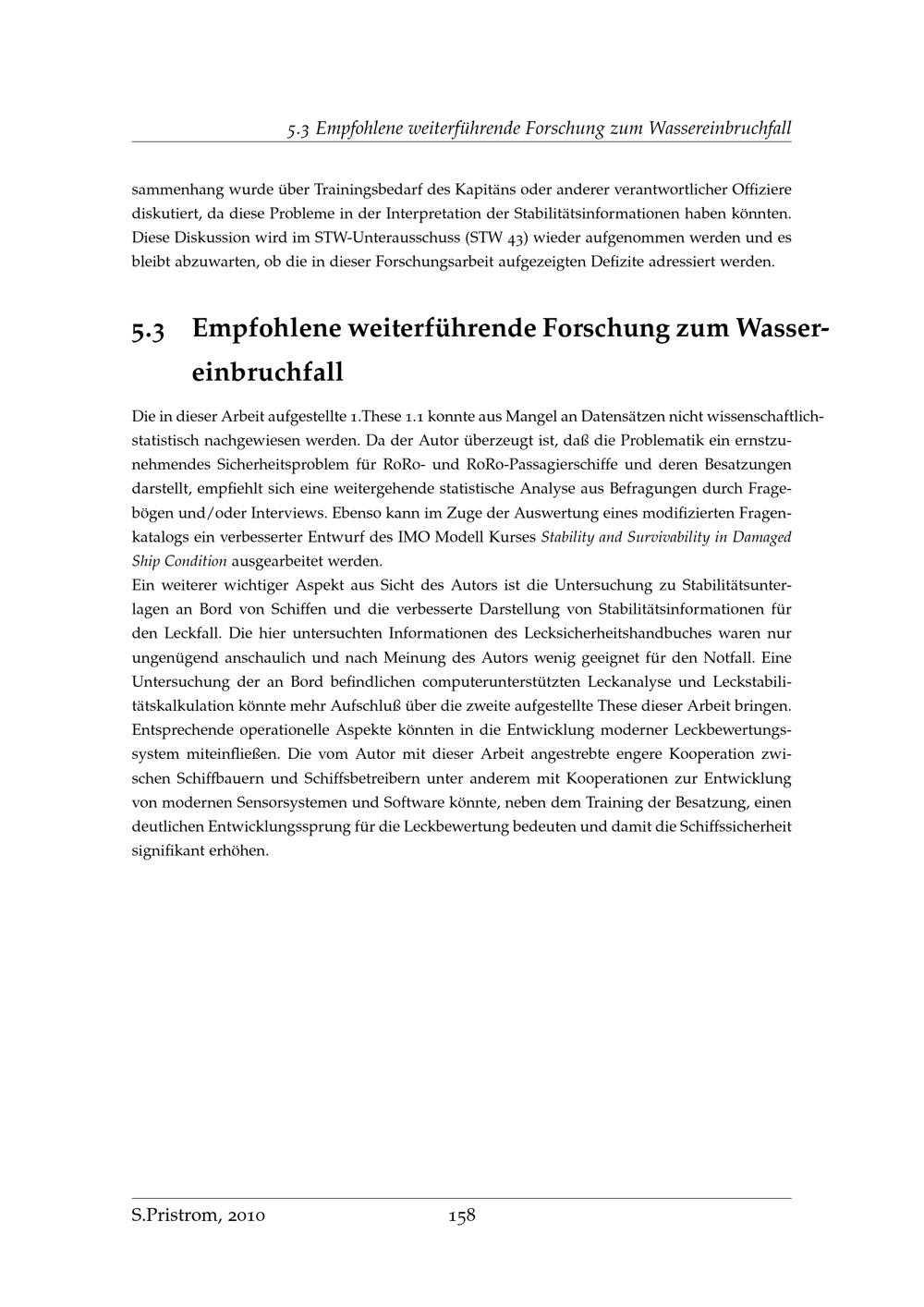 Untersuchung zur Einschätzung von Schwimmlage und Stabilität an Bord von RoRo und RoRo-Passagierschiffen im Wassereinbruchfall / von Sascha Pristrom