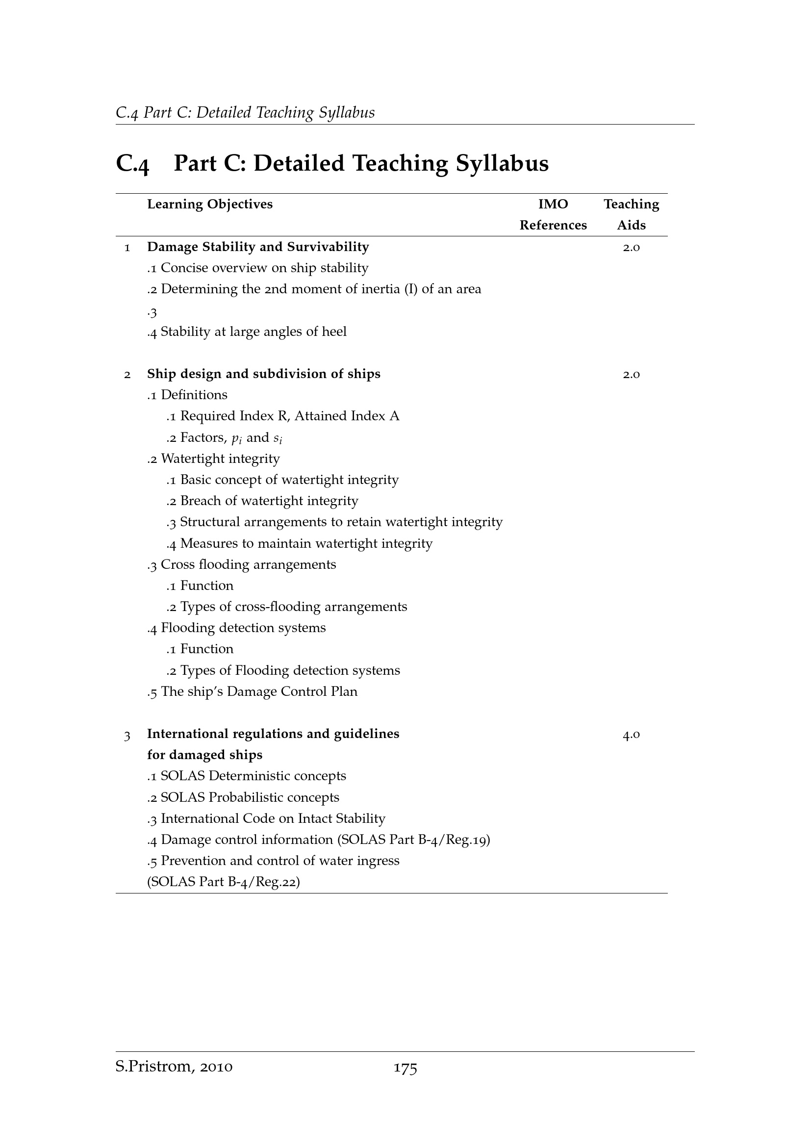 Part C: Detailed Teaching Syllabus