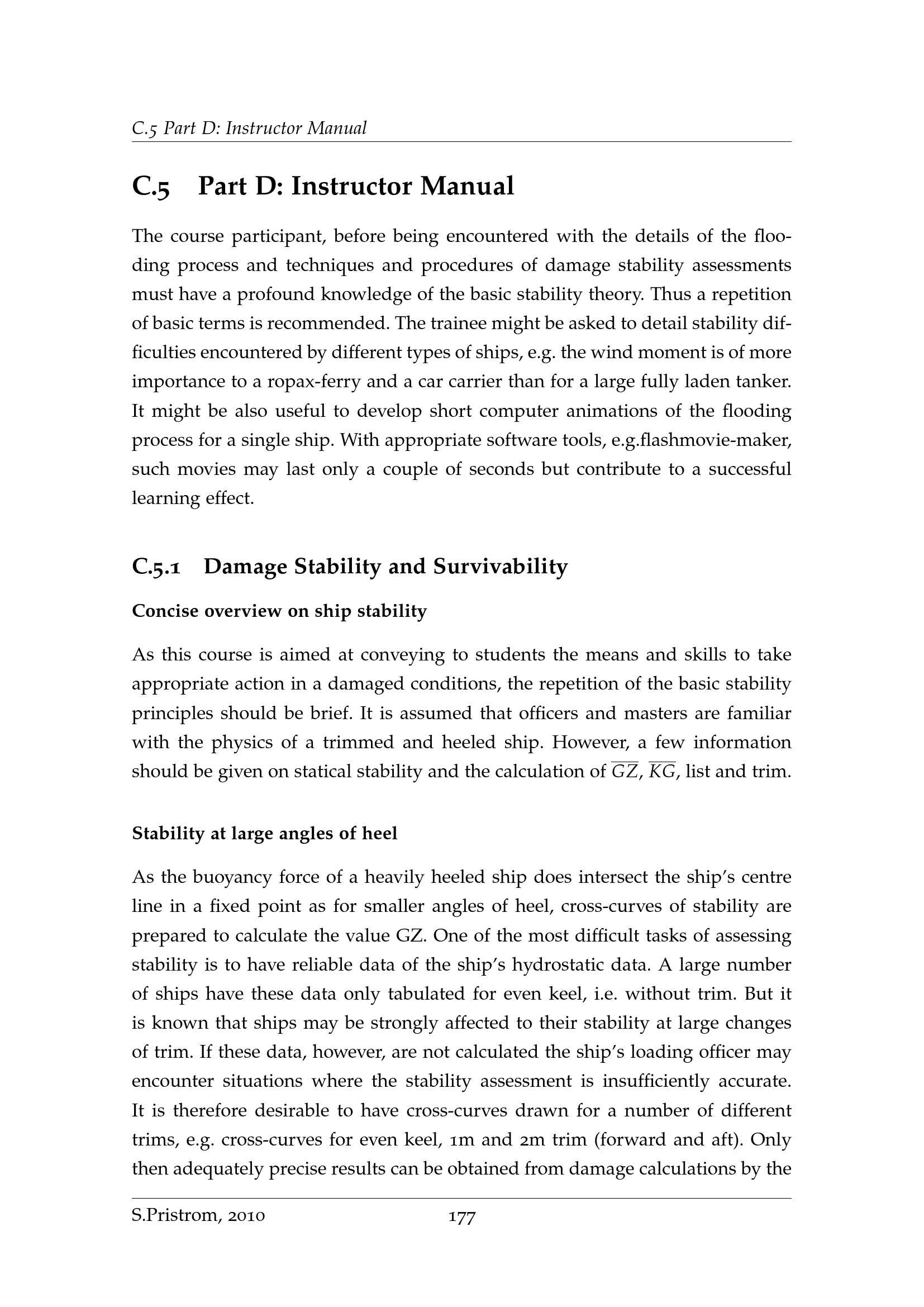 Entwurf: IMO Model Kurs Stability and Survivability in Damaged Ship Condition