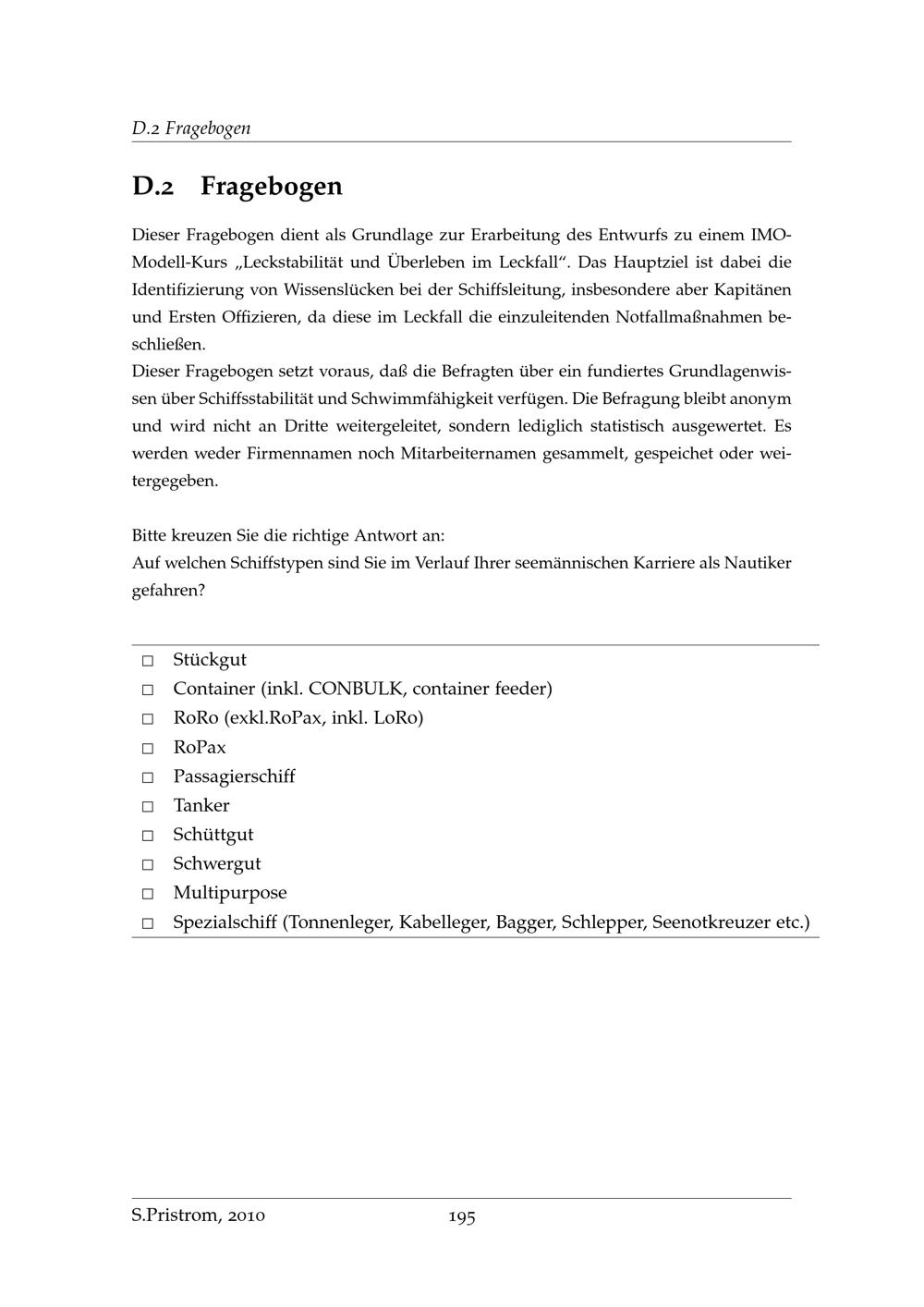 Untersuchung zur Einschätzung von Schwimmlage und Stabilität an Bord von RoRo und RoRo-Passagierschiffen im Wassereinbruchfall / von Sascha Pristrom