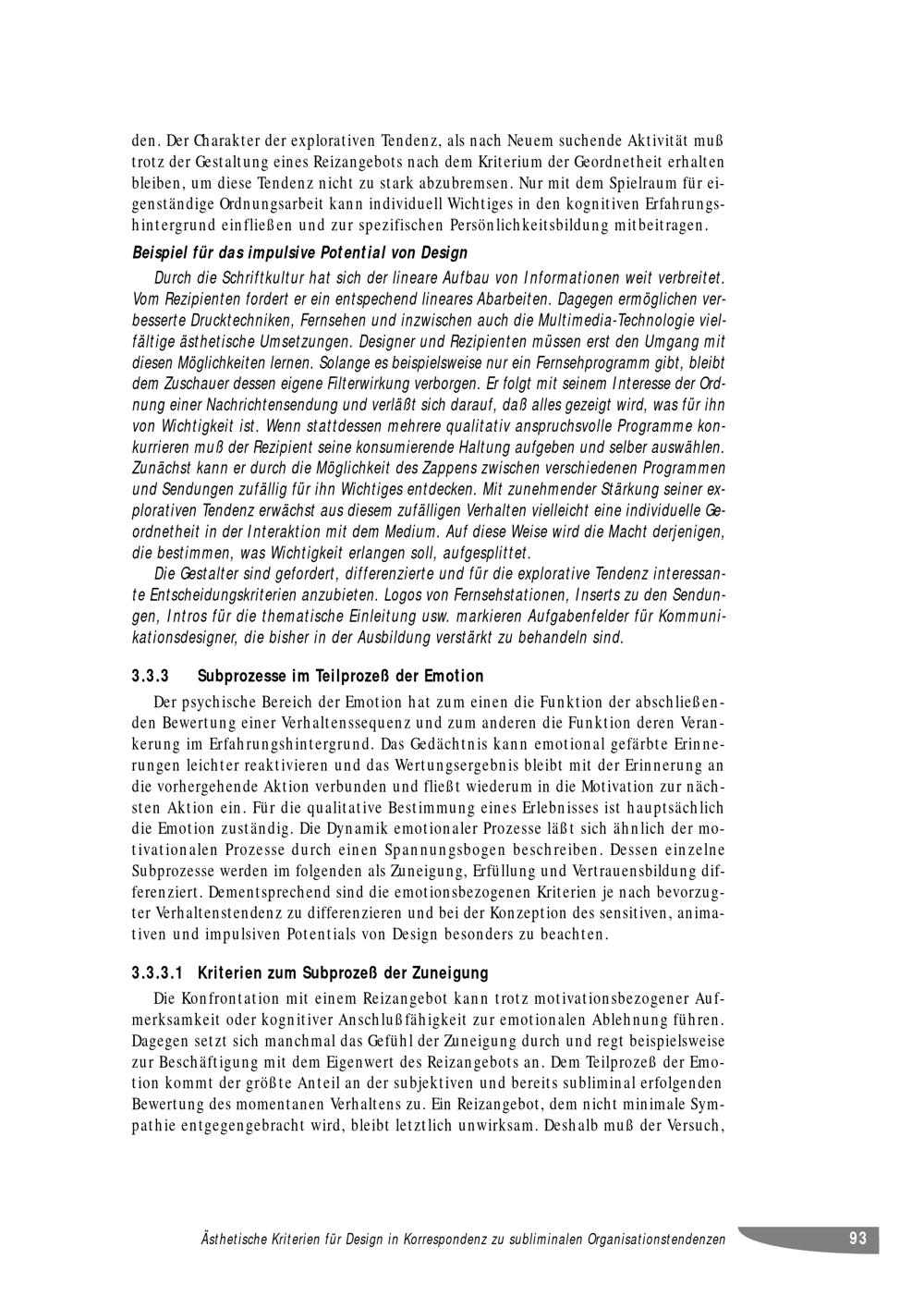 3.3.3 Subprozesse im Teilprozeß der Emotion