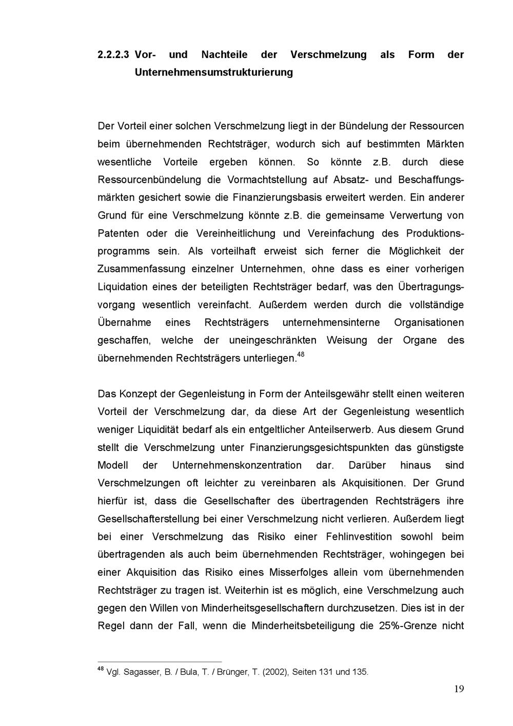2.2.2.3 Vor- und Nachteile der Verschmelzung als Form der Unternehmensumstruktur[...]