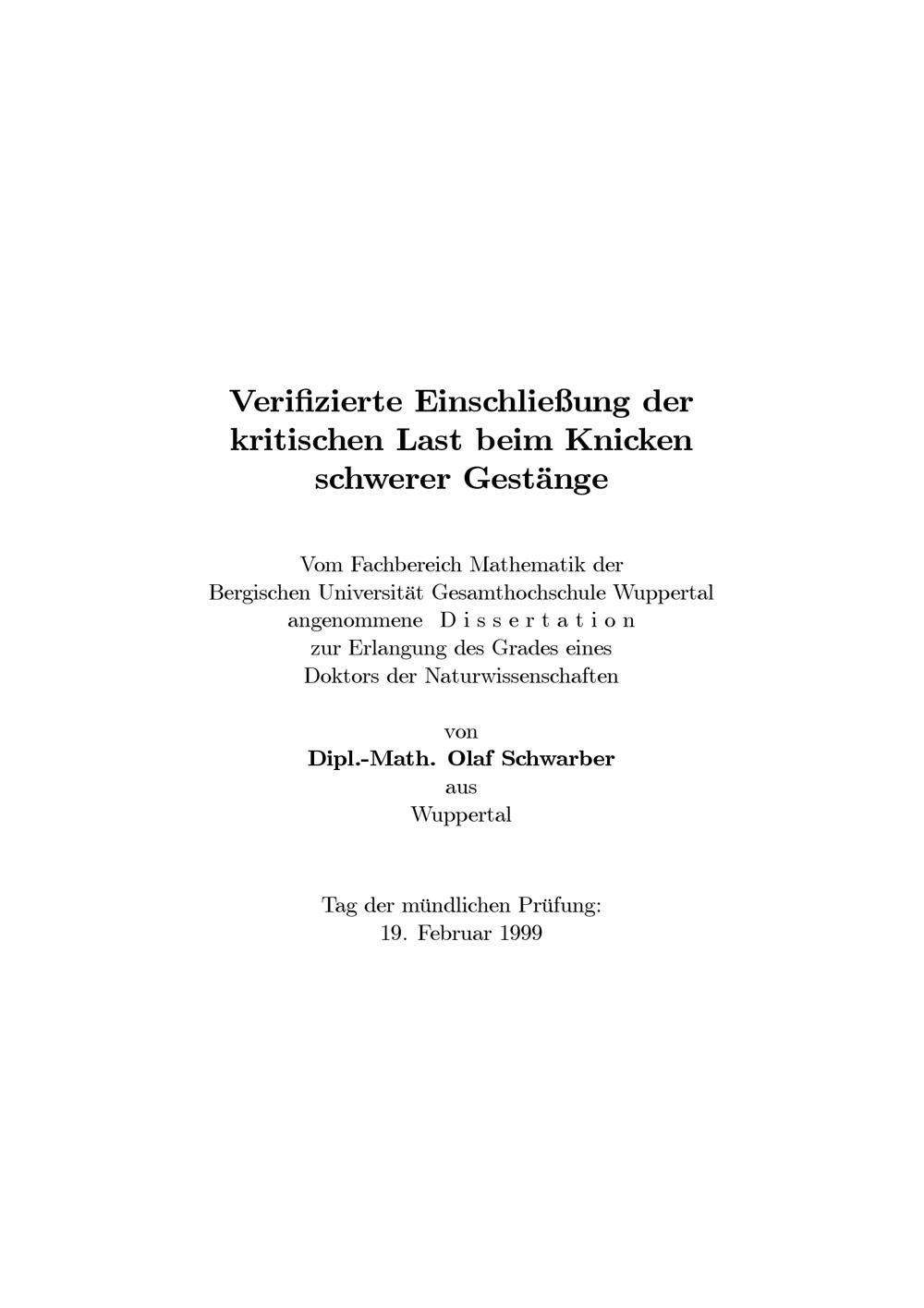 Verifizierte Einschließung der kritischen Last beim Knicken schwerer Gestänge / von Olaf Schwarber