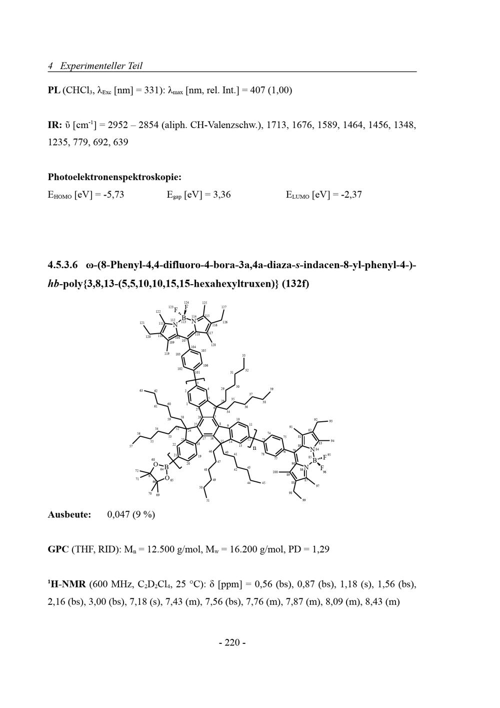 4.5.3.6 ω-(8-Phenyl-4,4-difluoro-4-bora-3a,4a-diaza-s-indacen-8-yl-phenyl-4-)-hb-poly{3,8,13-(5,5,10,10,15,15-hexahexyltruxen)}[...]