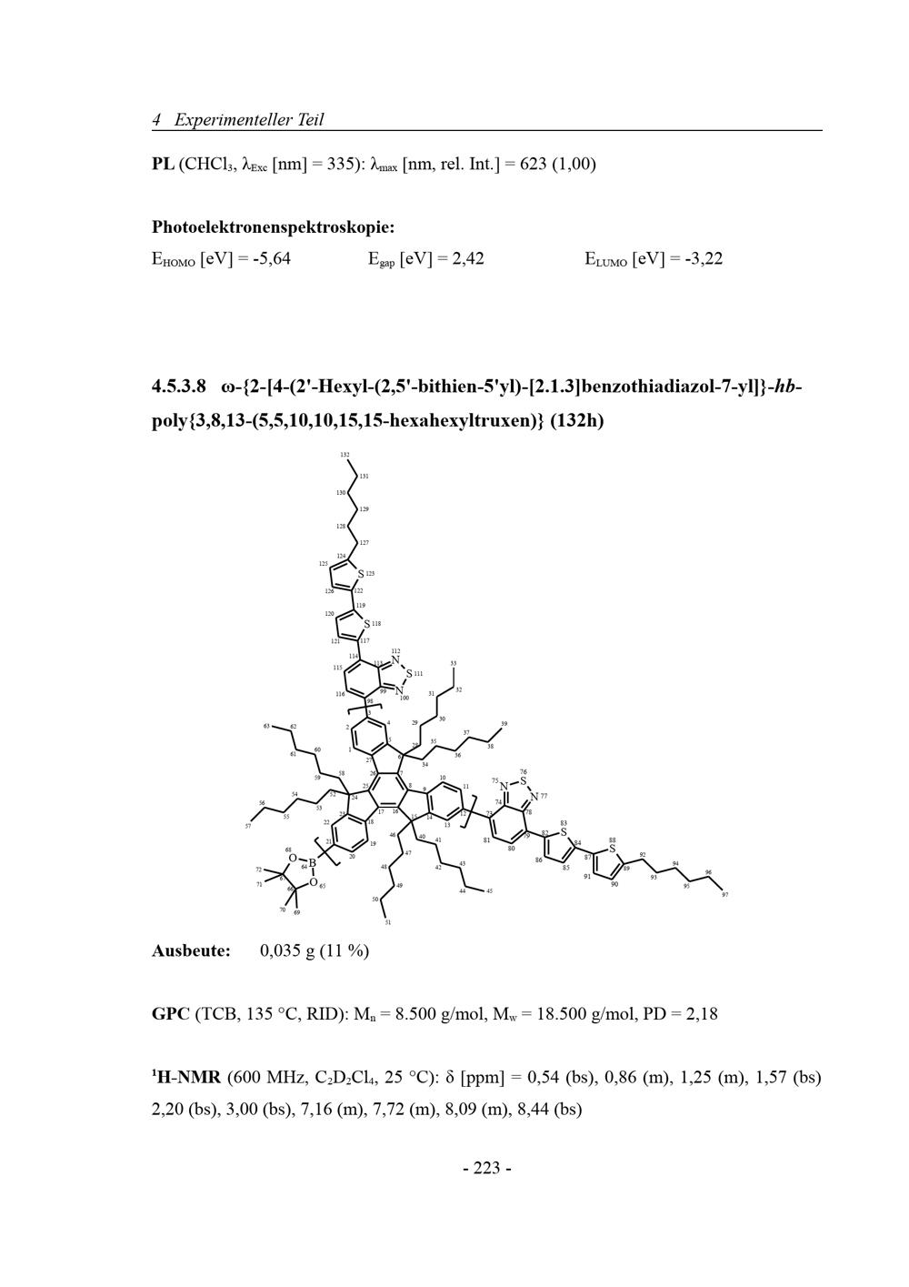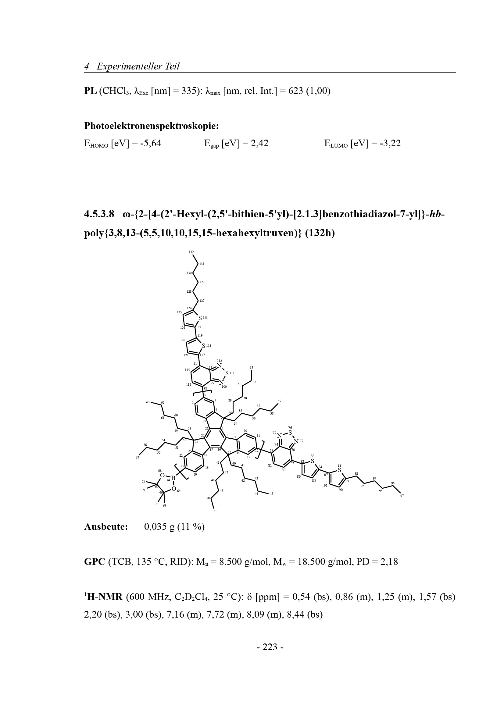 4.5.3.8 ω-{2-[4-(2'-Hexyl-(2,5'-bithien-5'yl)‑[2.1.3]benzothiadiazol-7-yl]}-hb-poly{3,8,13-(5,5,10,10,15,15-hexahexyltruxen)}[...]