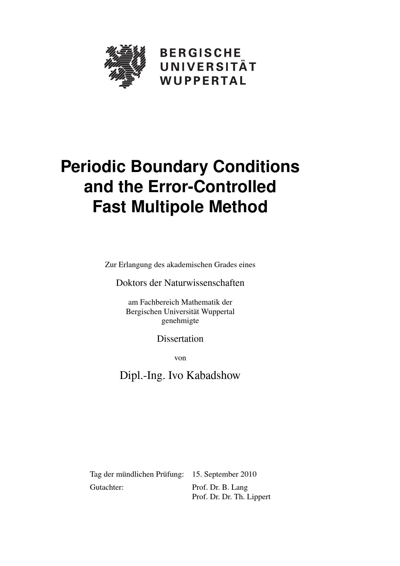 Periodic boundary conditions and the error controlled fast multipole method / von Ivo Kabadshow