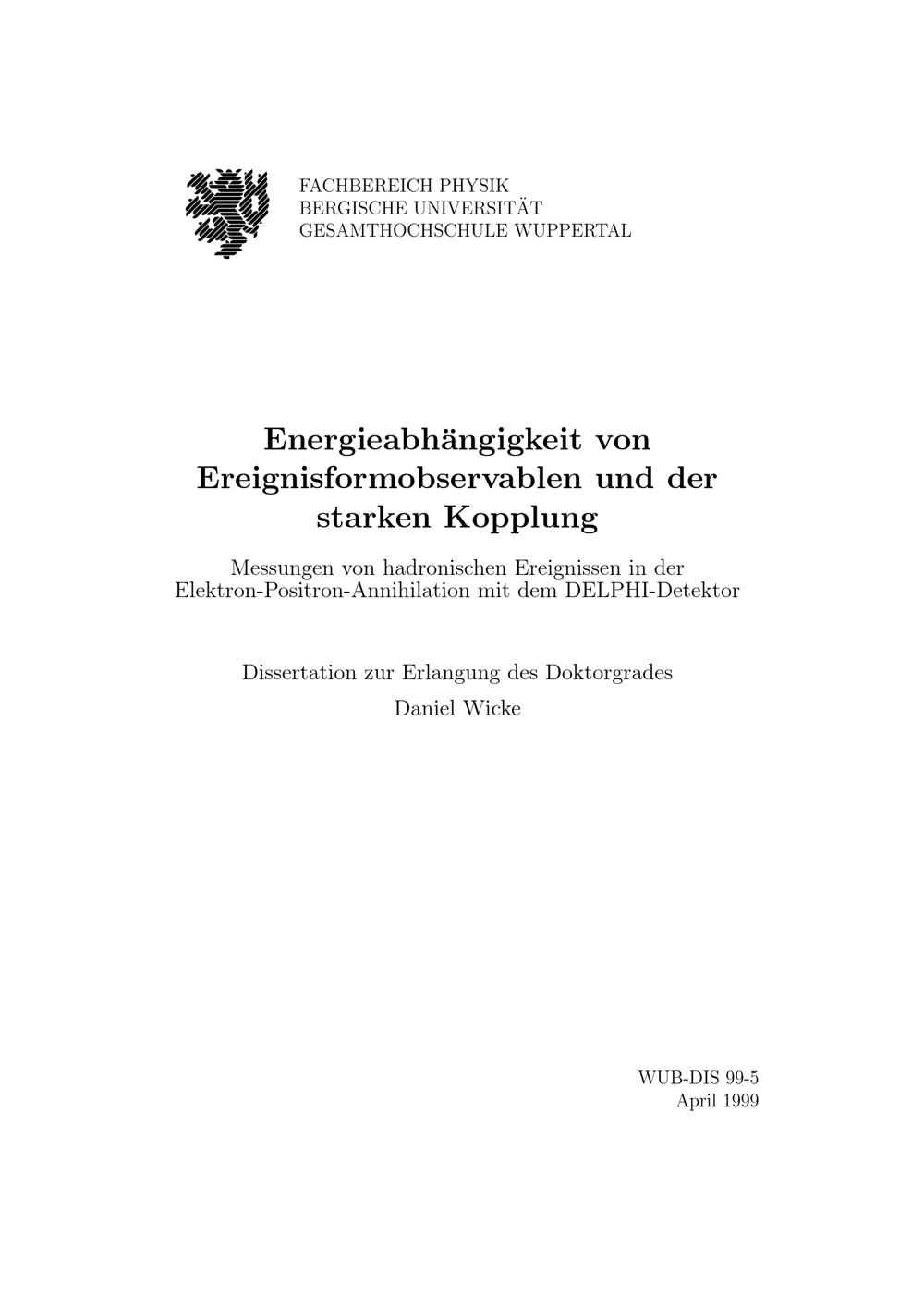 Energieabhängigkeit von Ereignisformobservablen und der starken Kopplung : Messungen von hadronischen Ereignissen in der Elektron-Positron-Annihilation mit dem DELPHI-Detektor / Daniel Wicke