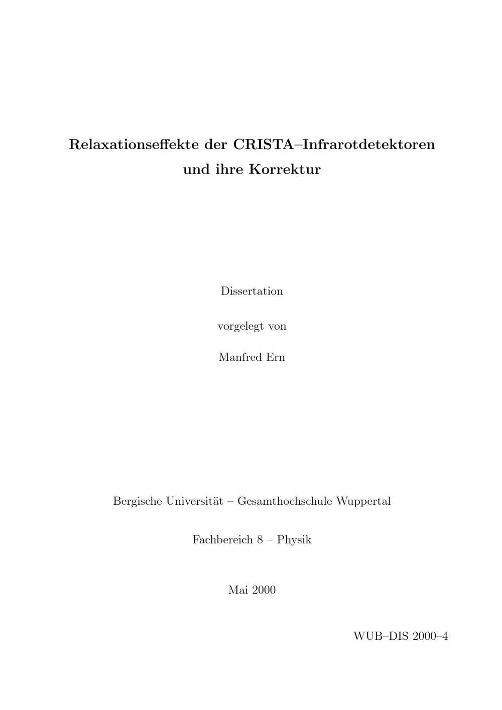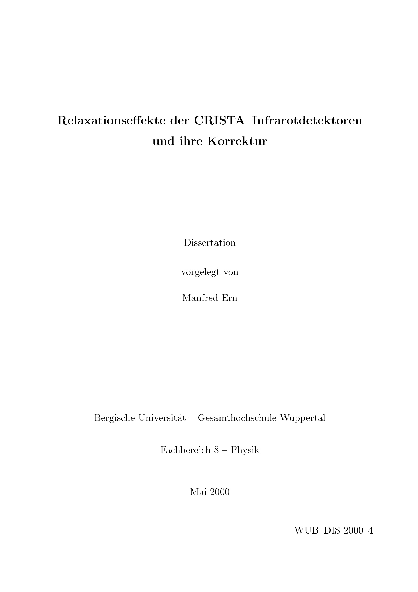 Relaxationseffekte der CRISTA-Infrarotdetektoren und ihre Korrektur / vorgelegt von Manfred Ern
