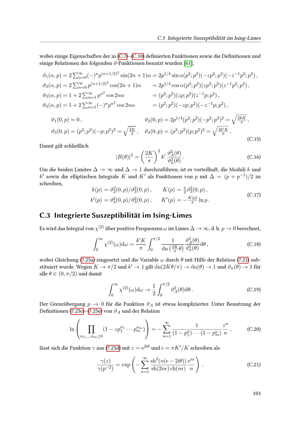 Integrierte Suszeptibilität im Ising-Limes