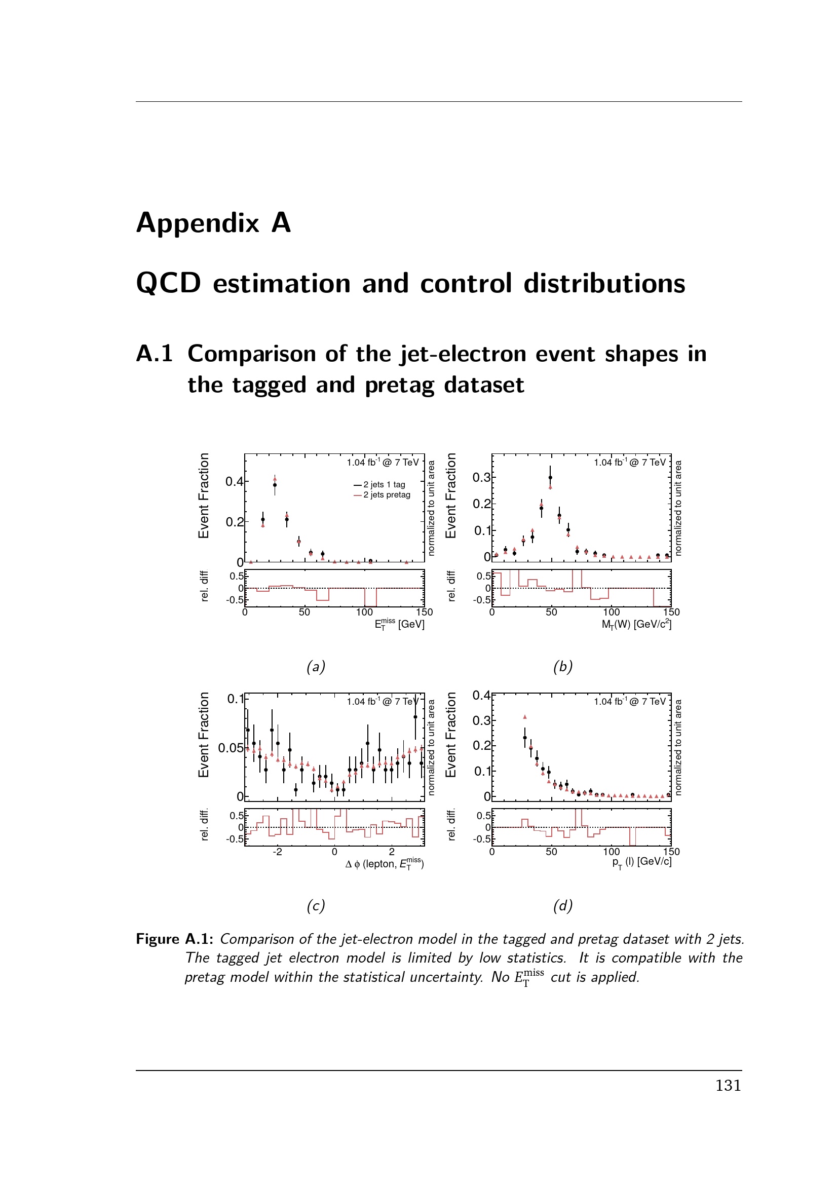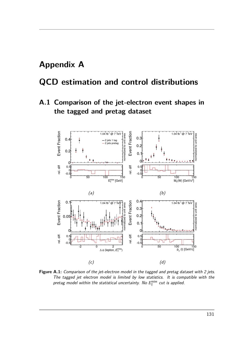 Comparison of the jet-electron event shapes in the tagged and pretag dataset