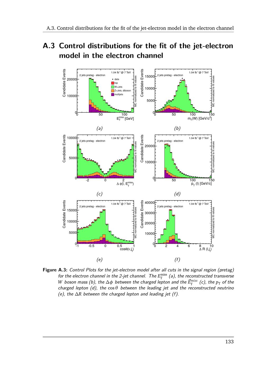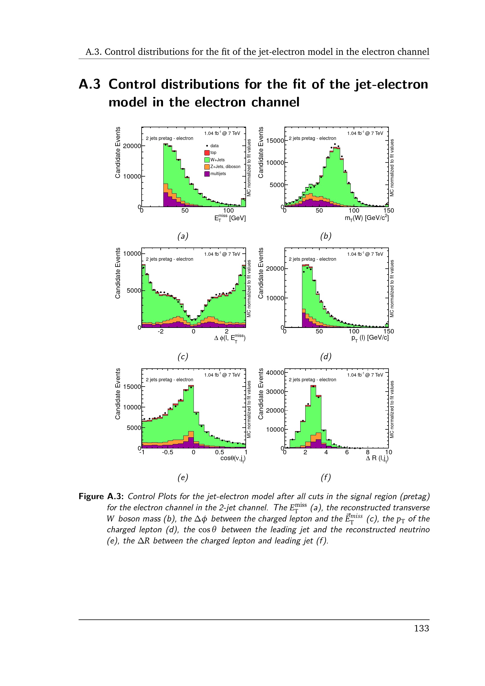 Control distributions for the fit of the jet-electron model in the electron chan[...]
