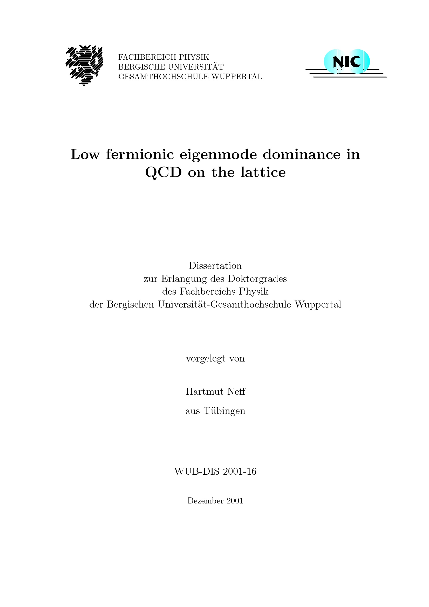 Low fermionic eigenmode dominance in QCD on the lattice / vorgelegt von Hartmut Neff