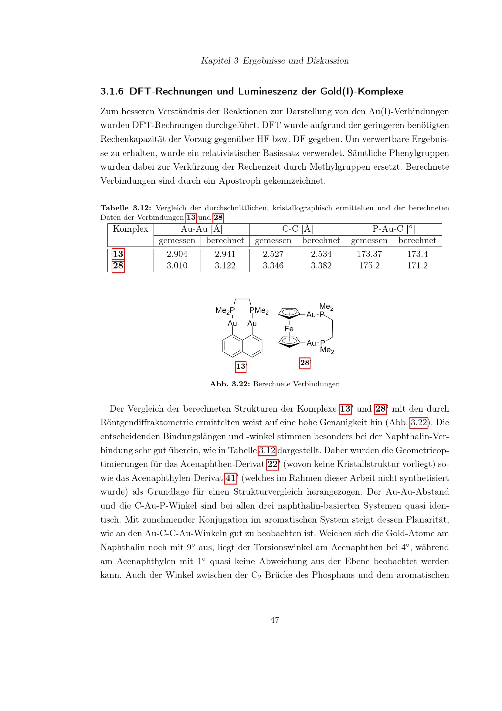 DFT-Rechnungen und Lumineszenz der Gold(I)-Komplexe