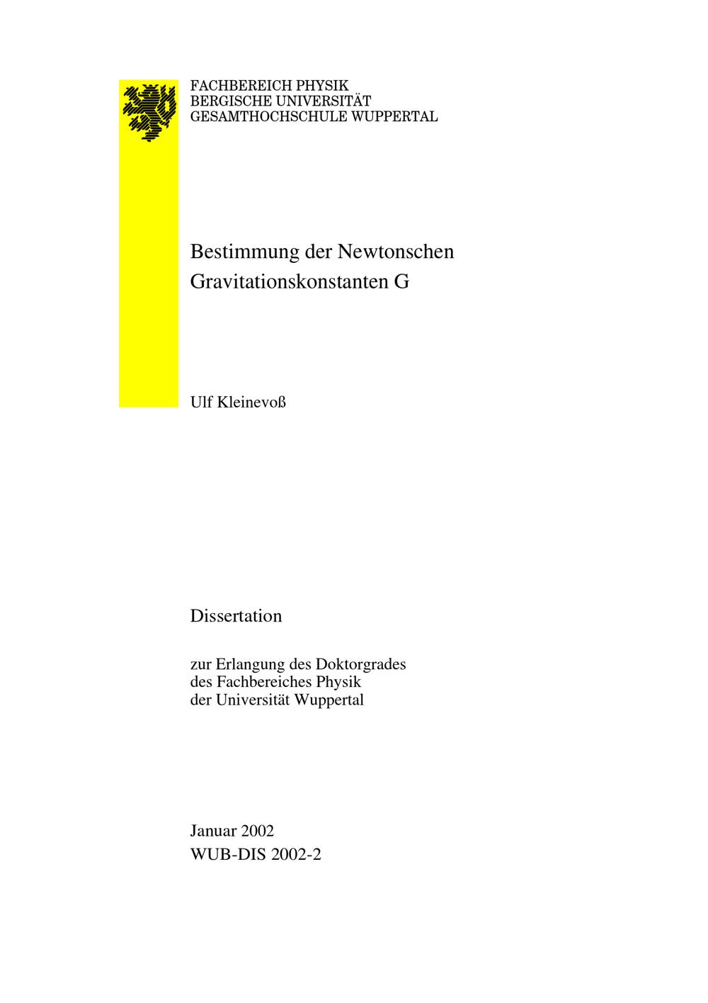 Bestimmung der Newtonschen Gravitationskonstanten G / Ulf Kleinevoß
