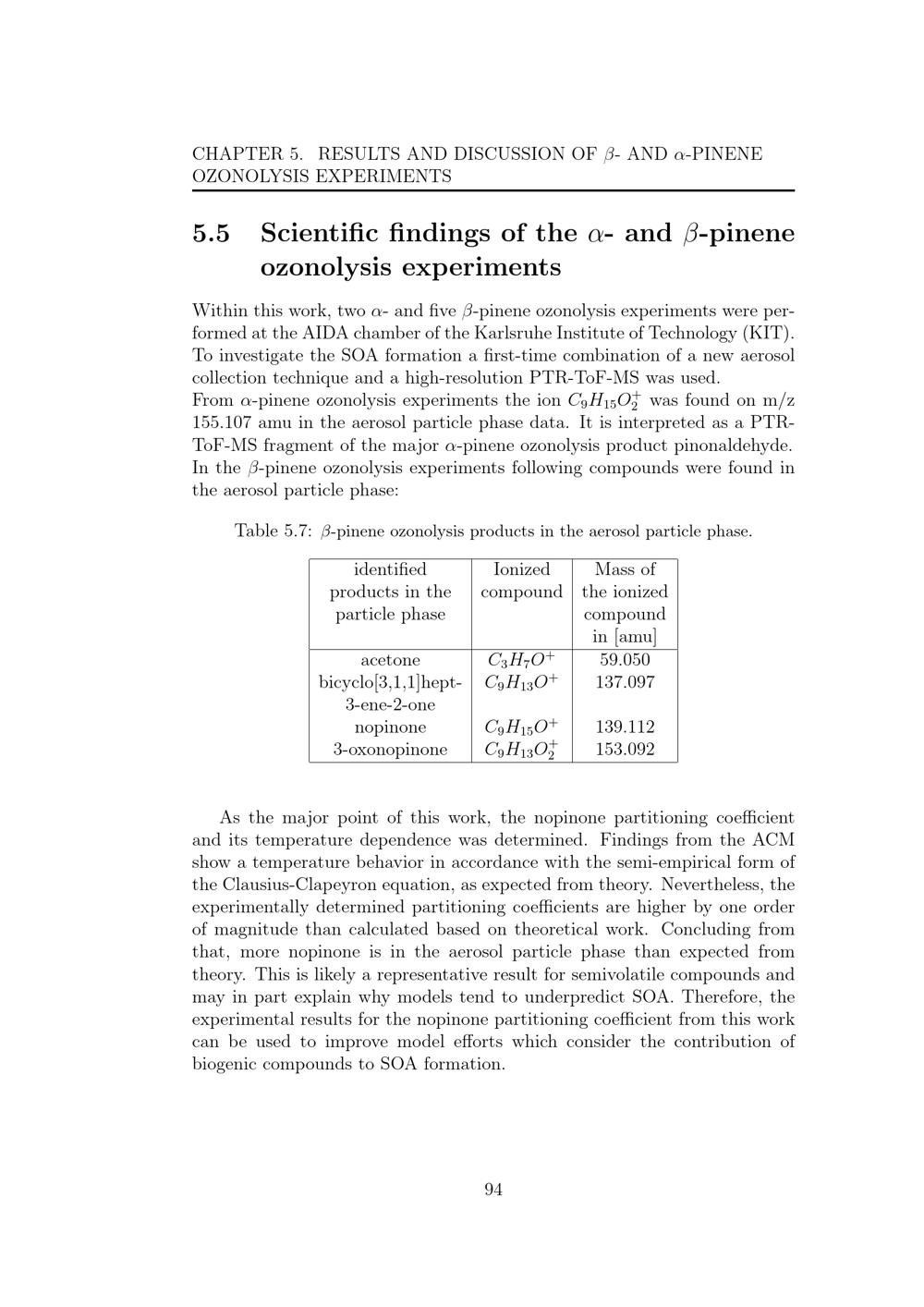 Experimental determination of the partitioning coefficient of nopinone as a marker substance in organic aerosol / von Bettina Steitz