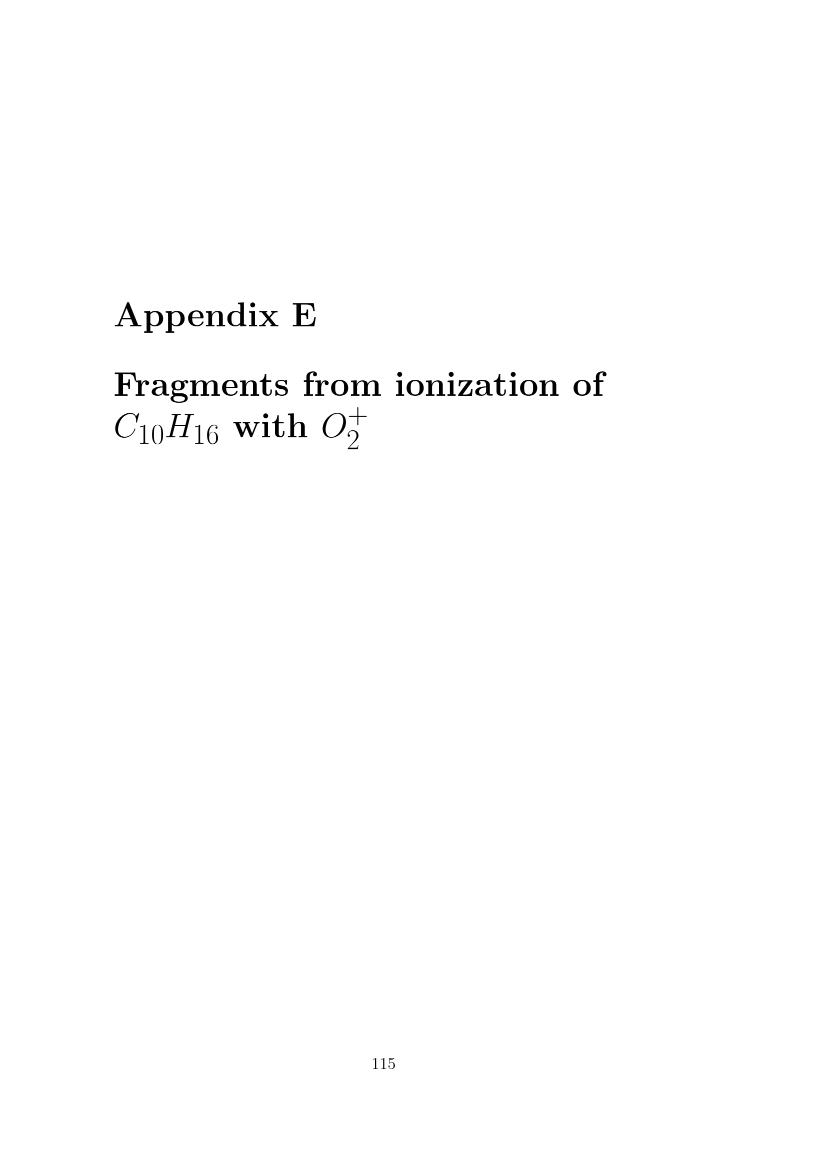 Fragments from ionization of C10H16 with O2+