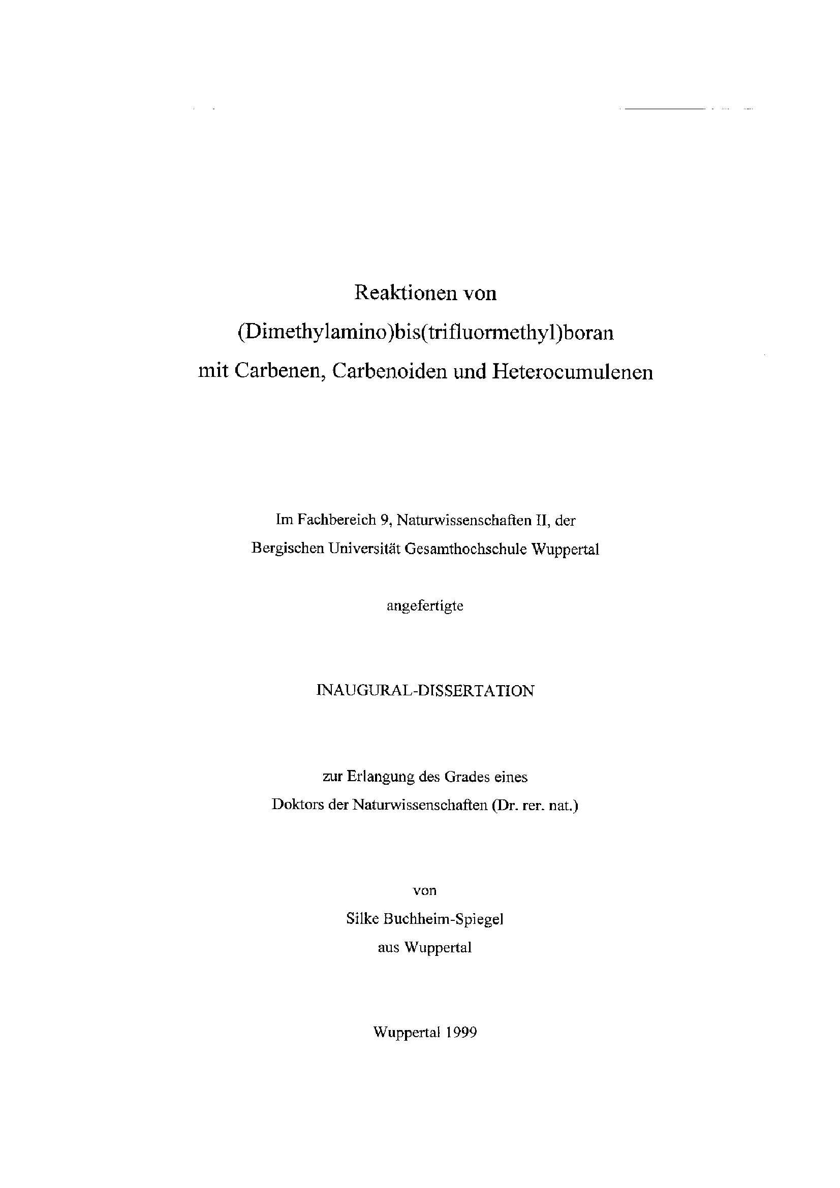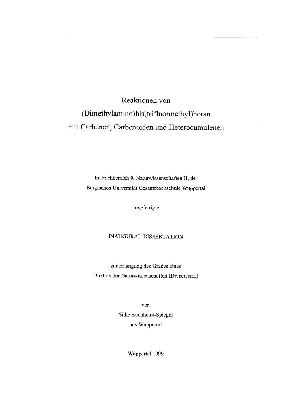 Reaktionen von (Dimethylamino)bis(trifluormethyl)boran mit Carbenen, Carbenoiden und Heterocumulenen / von Silke Buchheim-Spiegel