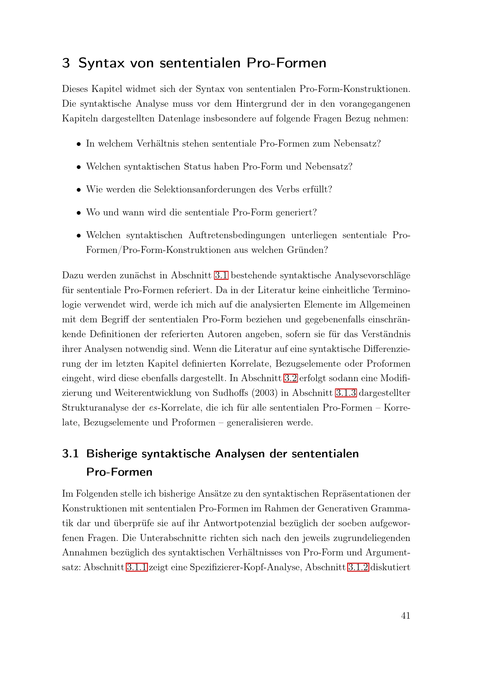Bisherige syntaktische Analysen der sententialen Pro-Formen
