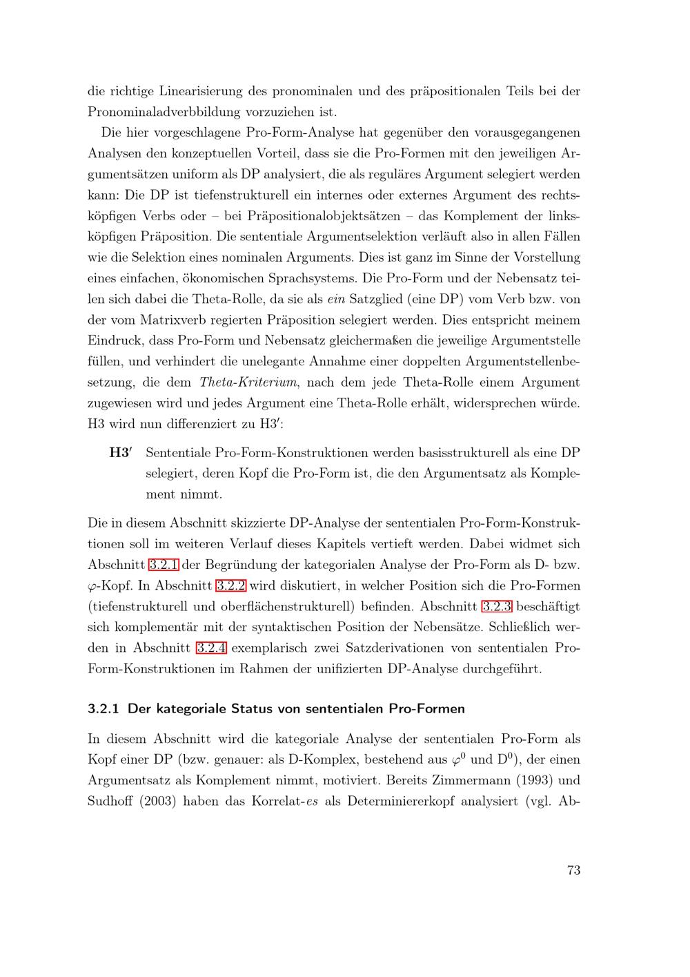 Sententiale Pro-Formen als Satzdeterminierer / vorgelegt von Johanna Andrea Auf'mkolk