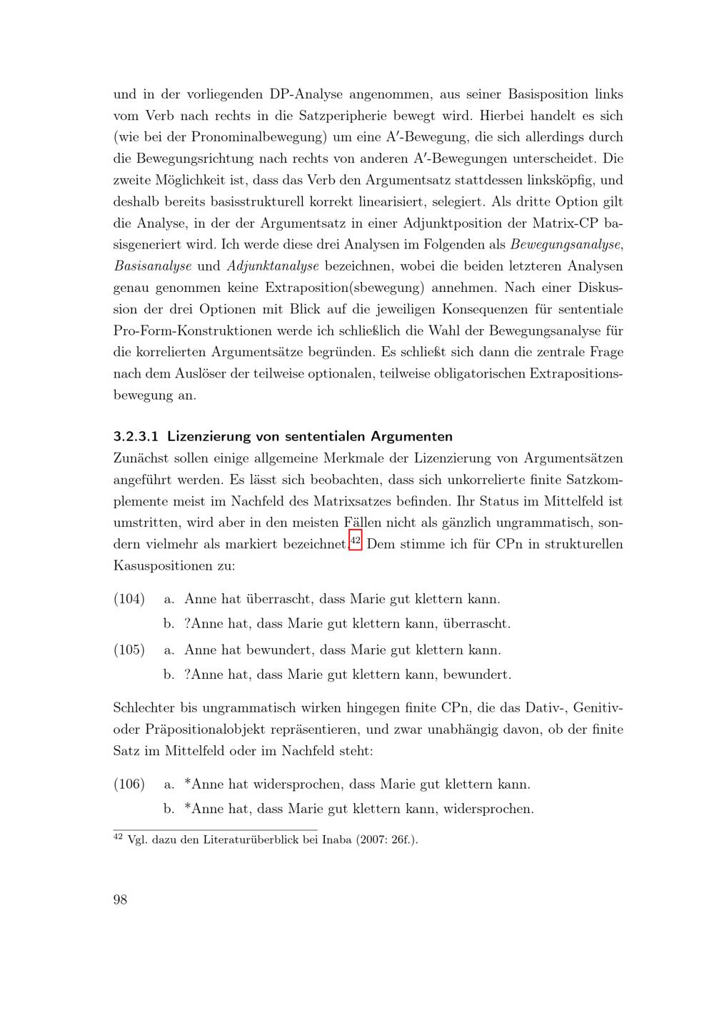 Lizenzierung von sententialen Argumenten