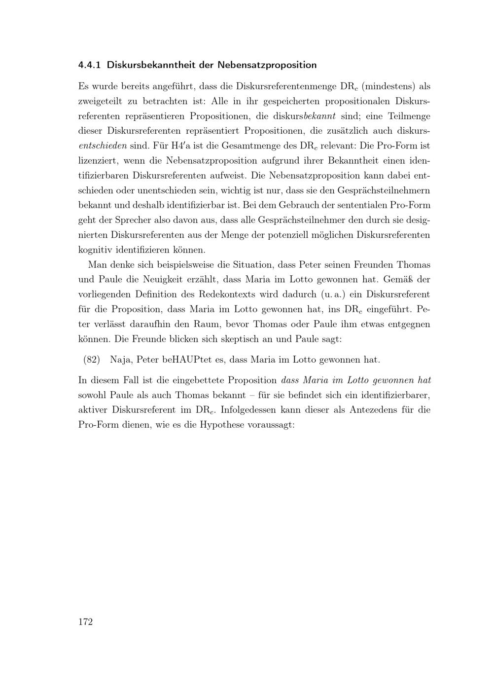 Diskursbekanntheit der Nebensatzproposition