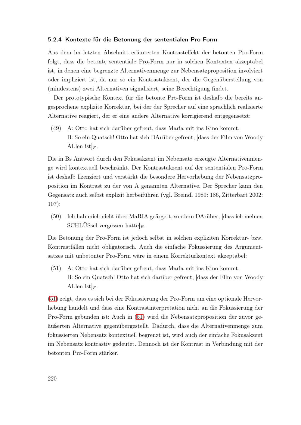Kontexte für die Betonung der sententialen Pro-Form