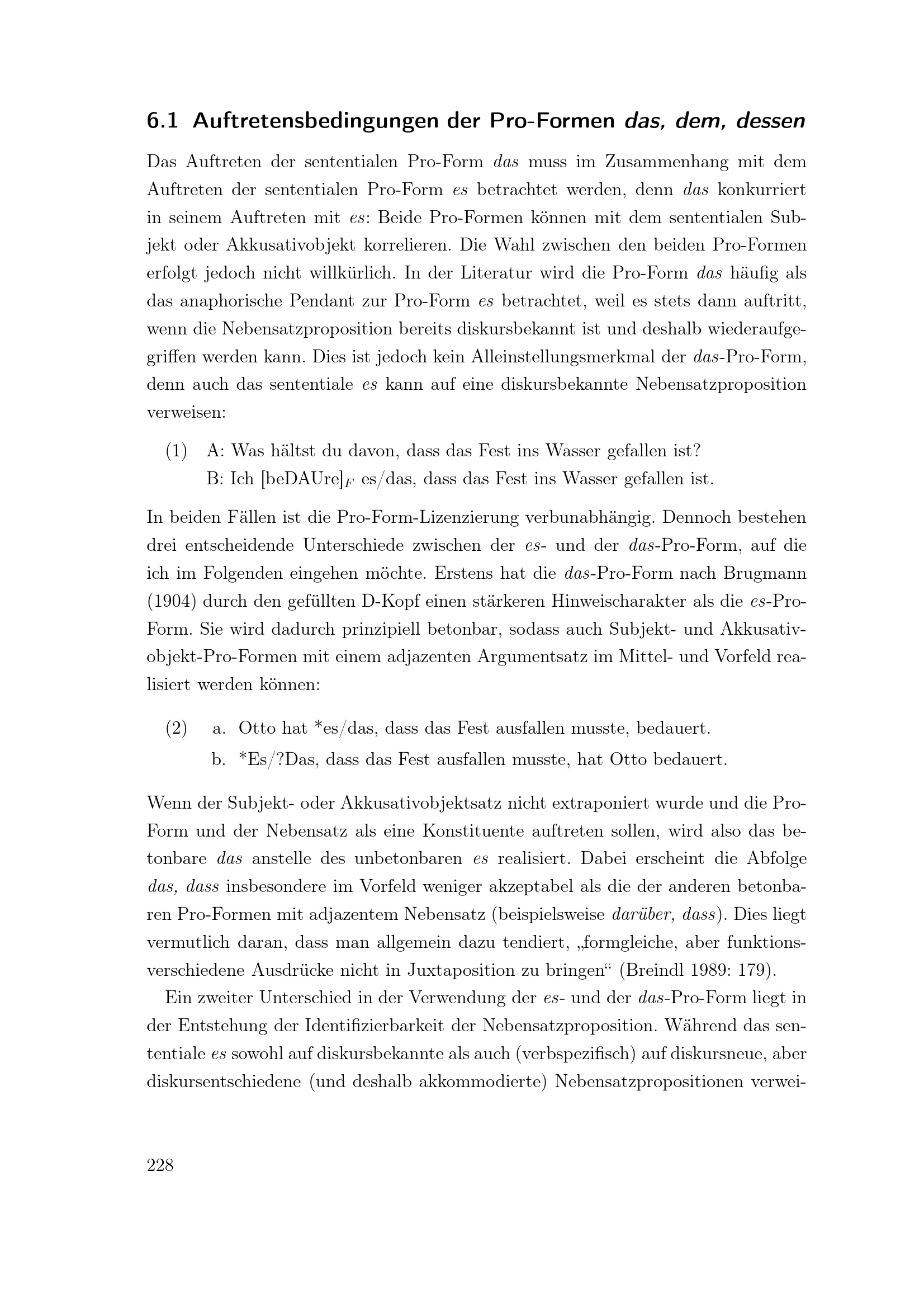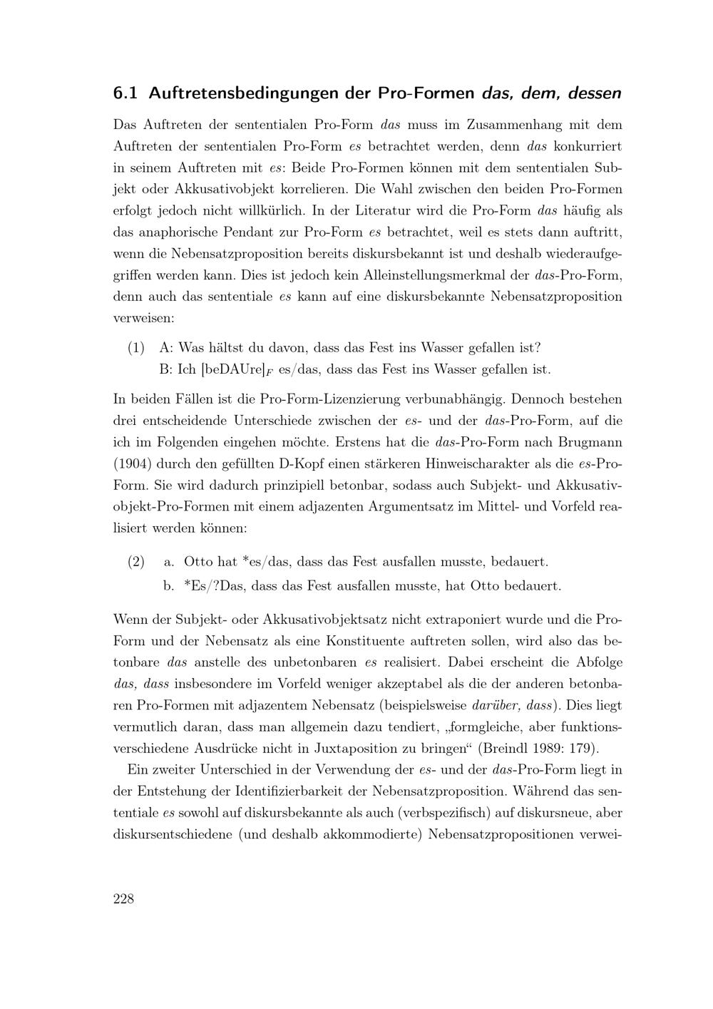 Auftretensbedingungen der Pro-Formen das, dem, dessen