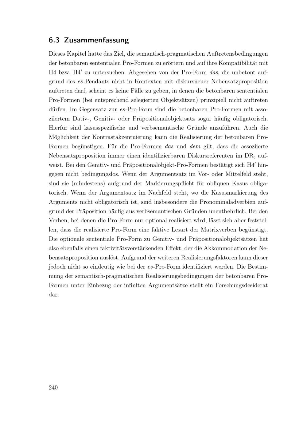 Synthese der sententialen Pro-Formen