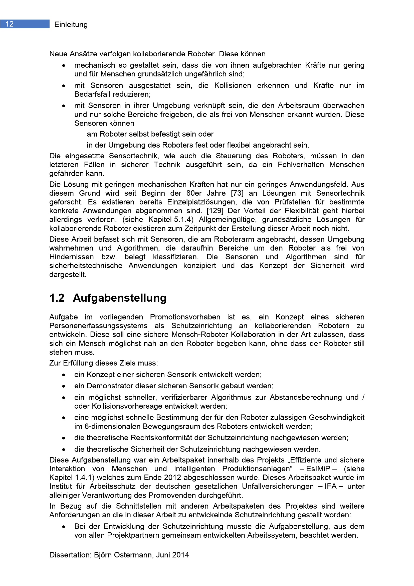 Entwicklung eines Konzepts zur sicheren Personenerfassung als Schutzeinrichtung an kollaborierenden Robotern / vorgelegt von Björn Ostermann