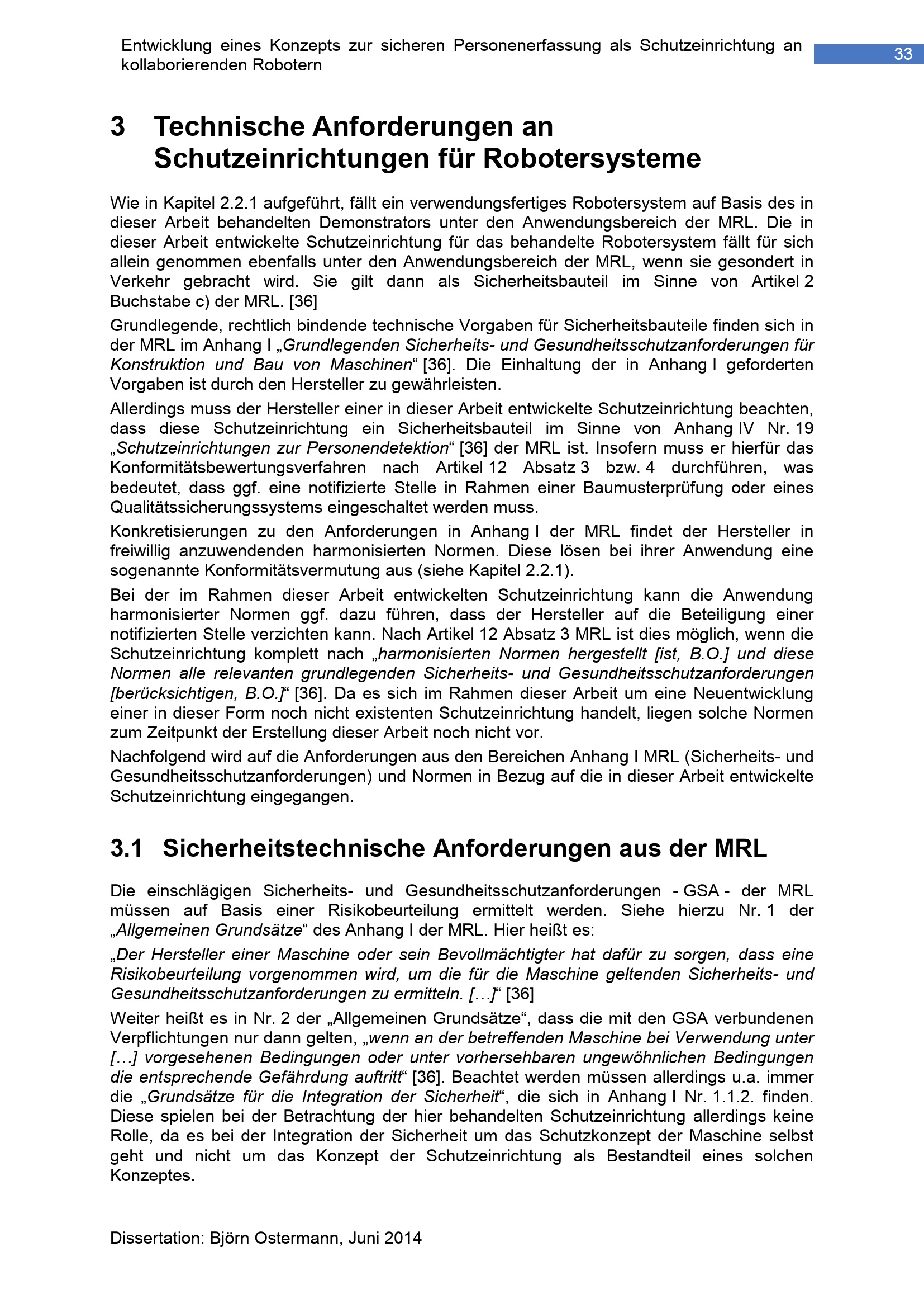 Entwicklung eines Konzepts zur sicheren Personenerfassung als Schutzeinrichtung an kollaborierenden Robotern / vorgelegt von Björn Ostermann